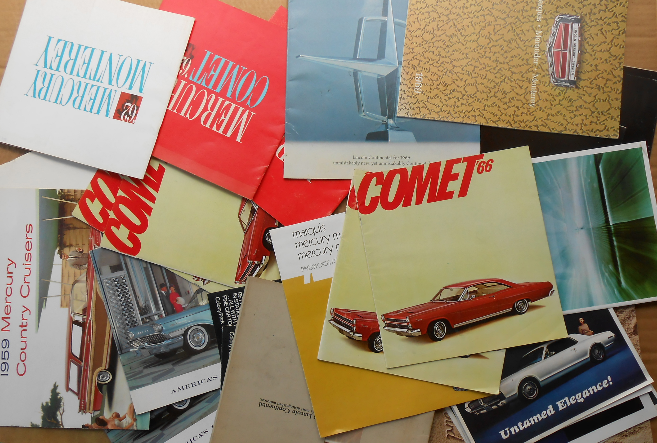 1950′-60’s Mercury, Cougar, Lincoln, Ford brochures, 62 items