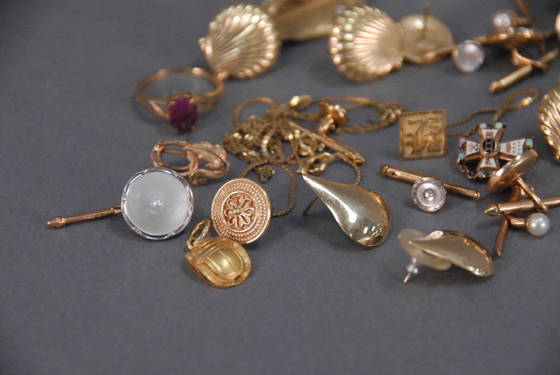Bag lot of mostly 14K gold, total weight 42.8 grams.