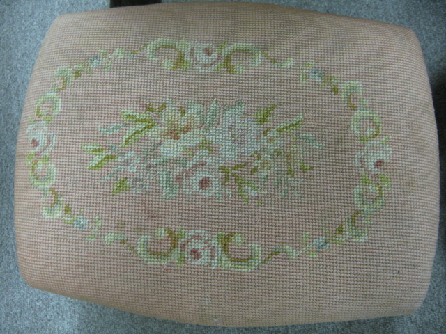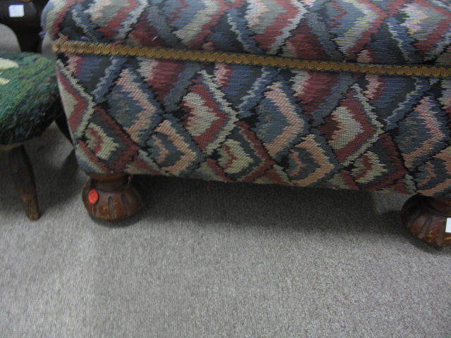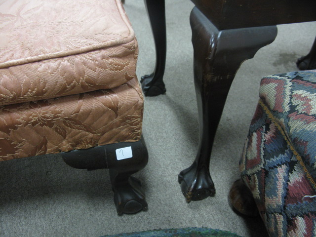 Five piece lot to include four footstools and ball and claw foot vanity bench
