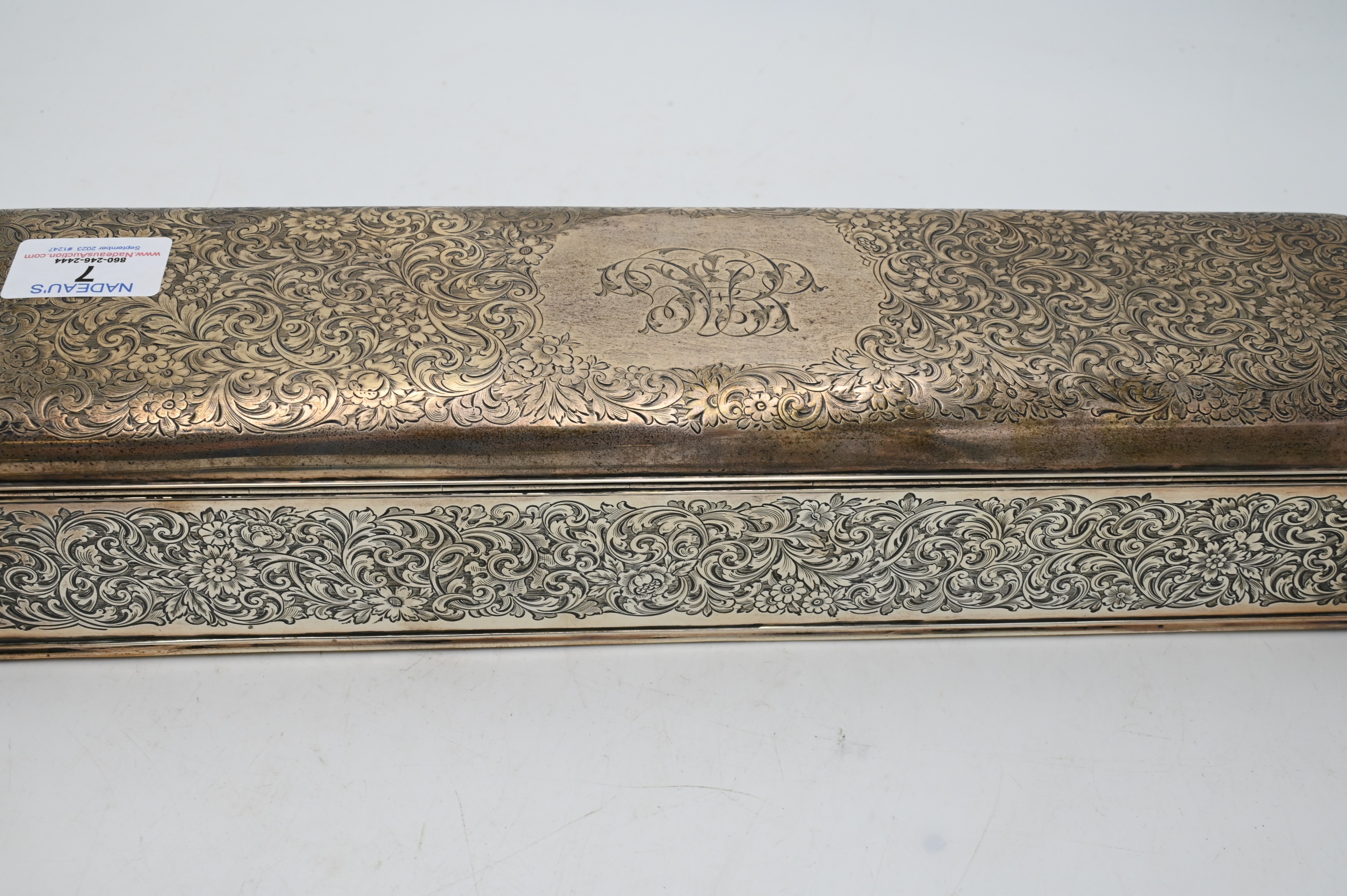 Gorham Sterling Silver Glove Box, with liner, length 15 inches, total weight 38.4 grams.