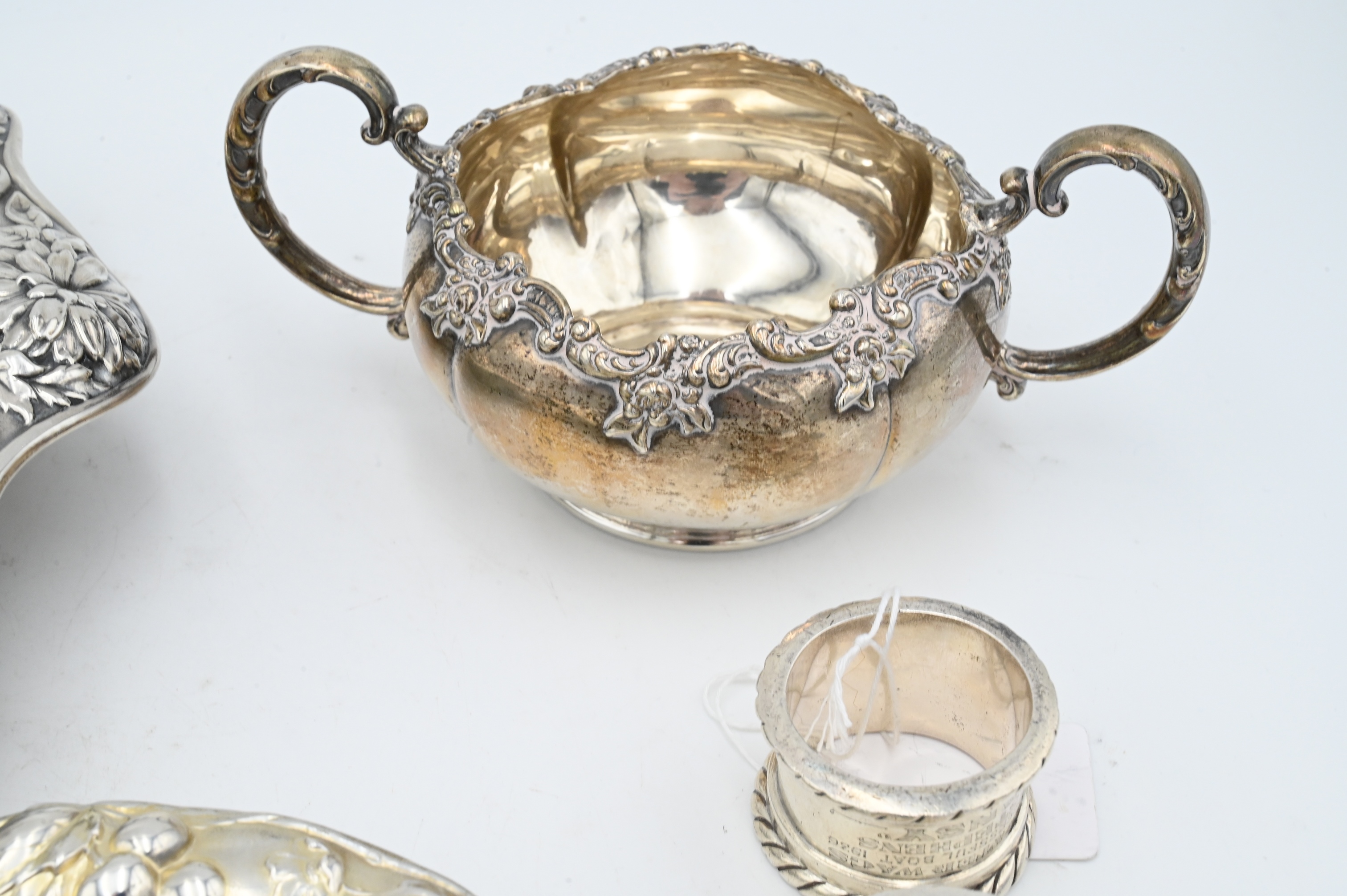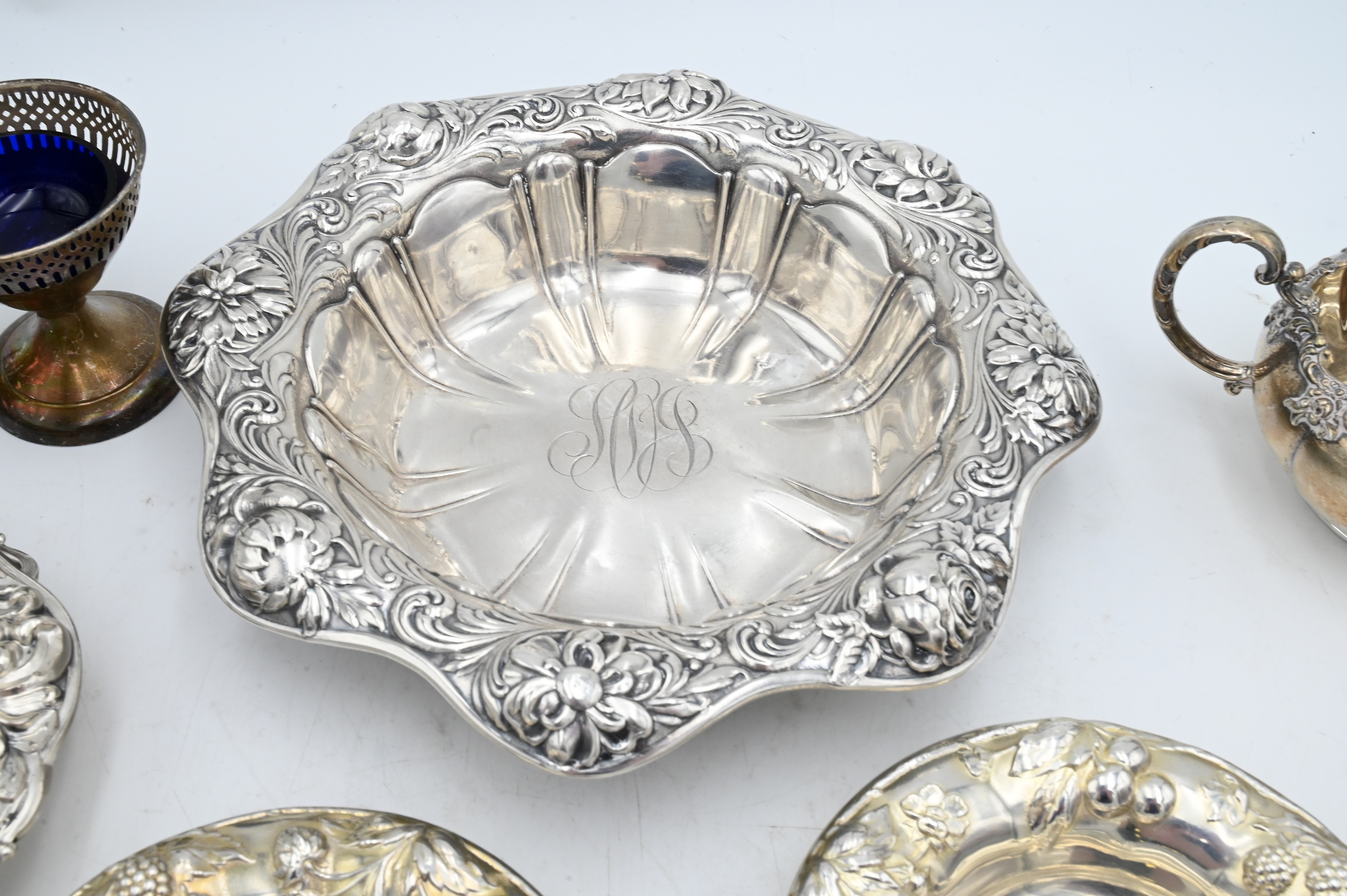to include napkin rings, creamer, sugar, small bowls, and a larger repousse bowl