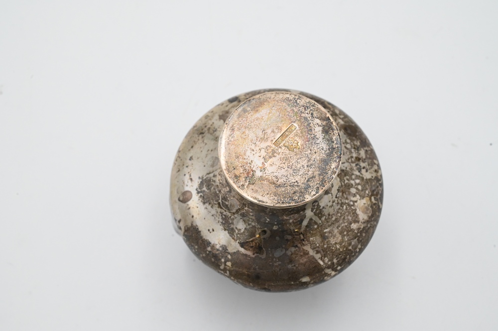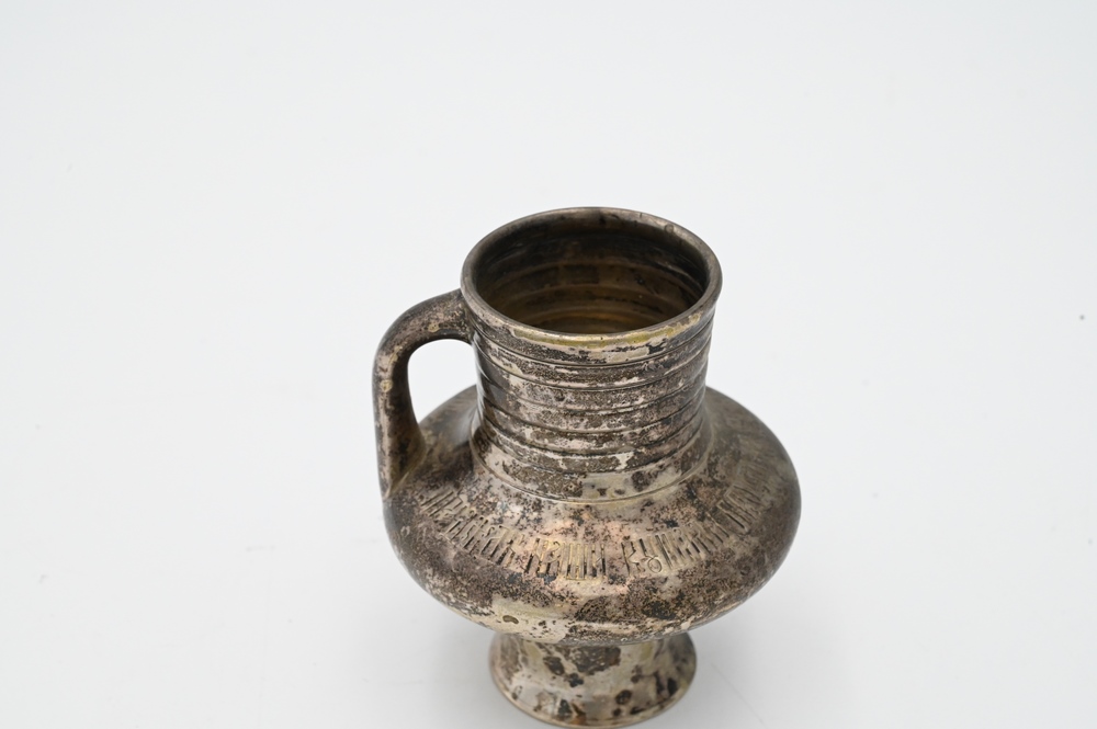 Lot 7: Russian Silver Cup, having handle and writing all around, height 3 3/4 inches, 6 t.oz.