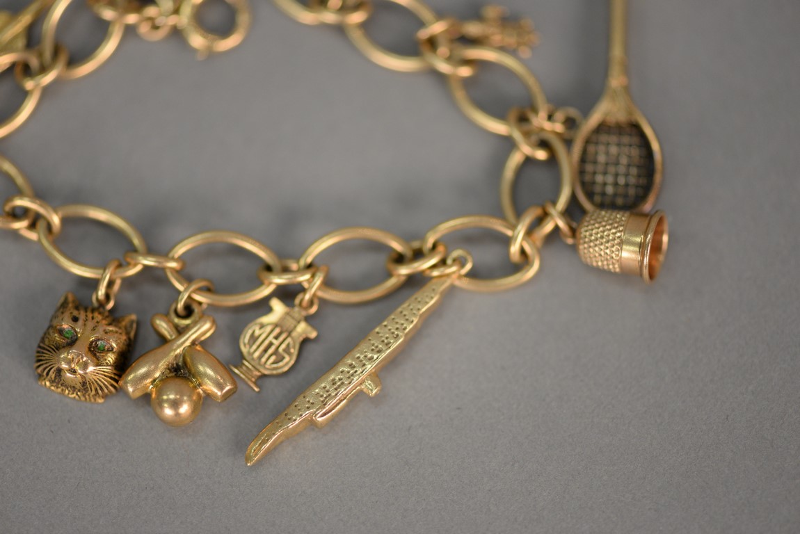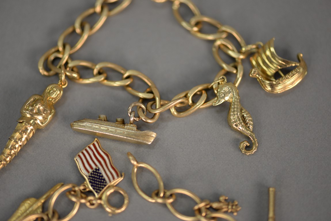Two 14K gold charm bracelets with charms. 47.4 grams