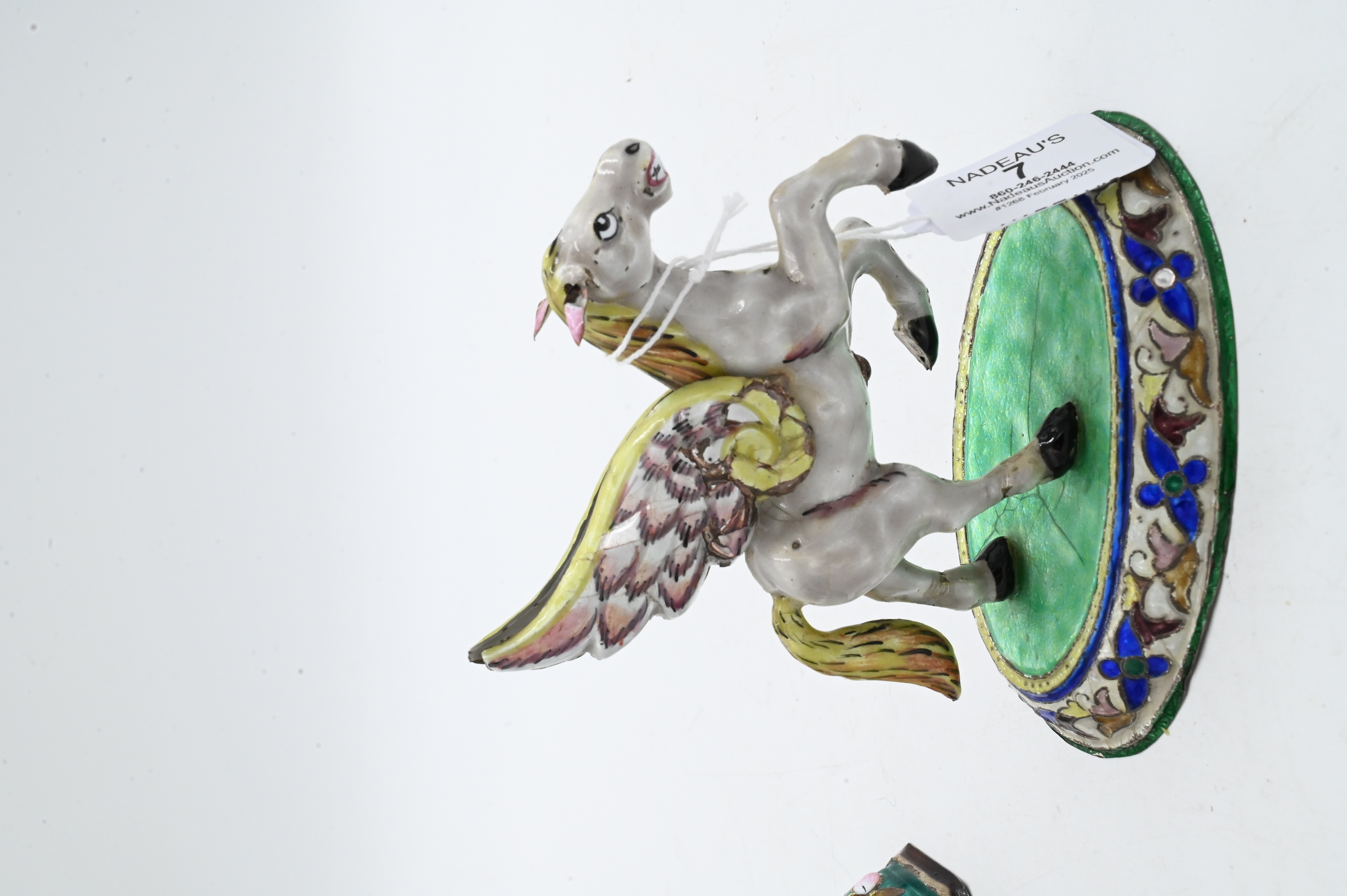 to include caravan with elephant, horse and camel with their riders, one pegasus (winged horse) both marked “silver” on base