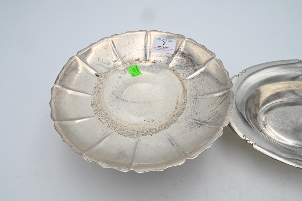 Lot 7: Two Sterling Silver Dishes, to include a large International compote, height 4 inches, diameter 10 inches; along with an oval serving dish, diameter 11 3/4 inches, 38 t.oz.