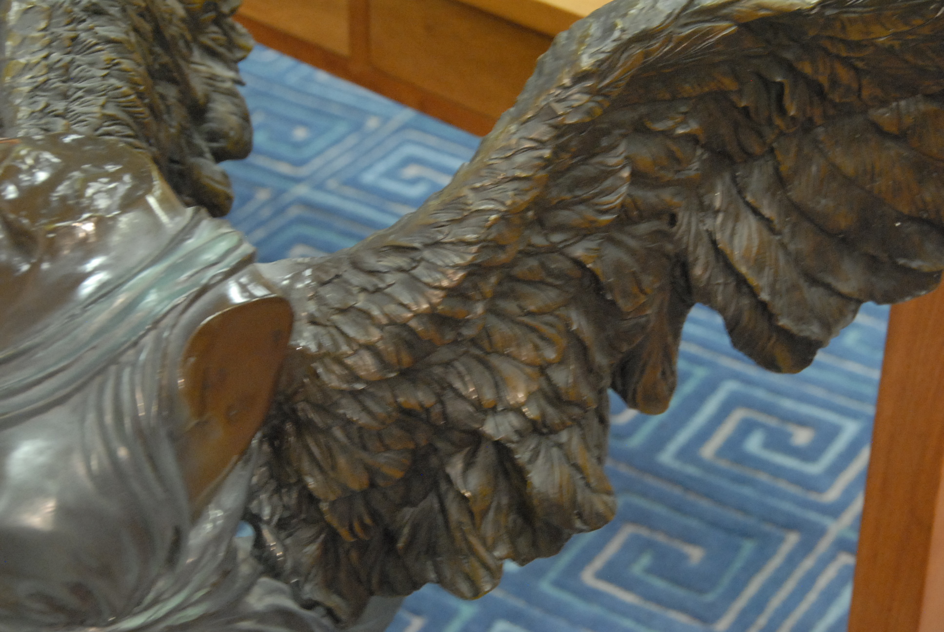 Bronze sculpture of winged headless figure, after A. Moreau, ht. 39in.