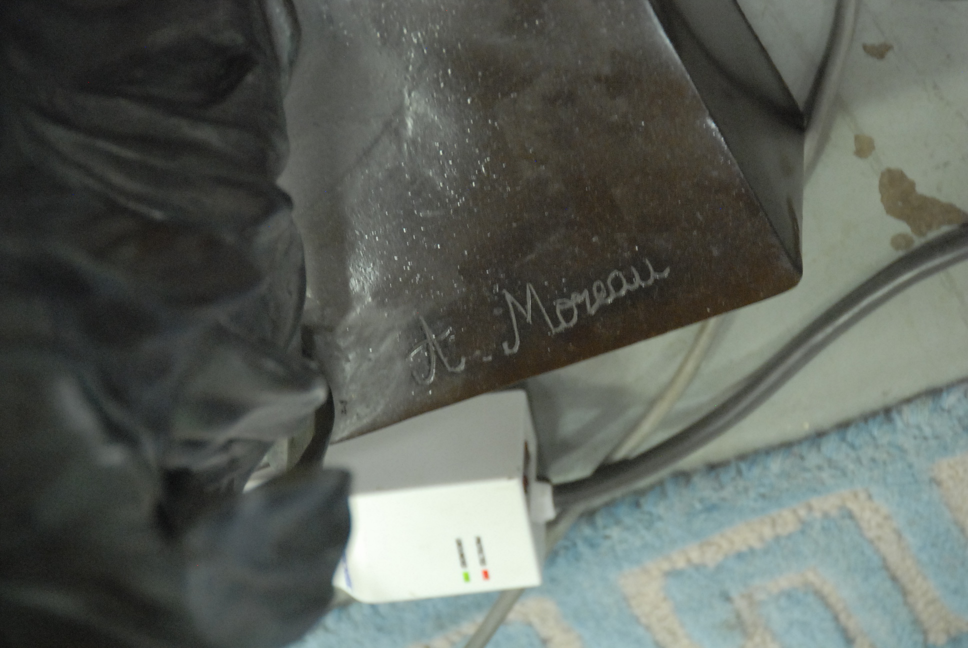 Lot 70: Bronze sculpture of winged headless figure, after A. Moreau, ht. 39in.