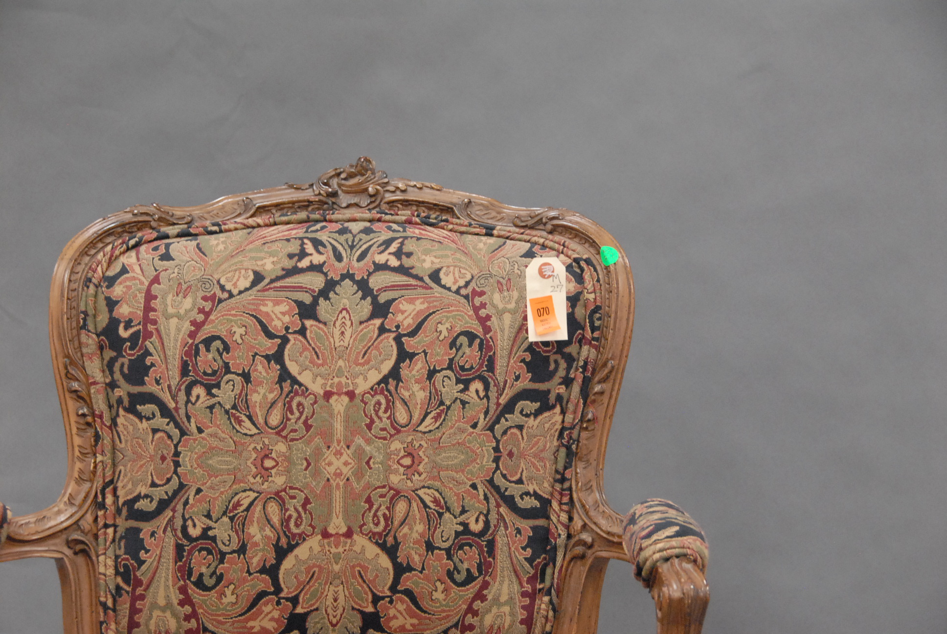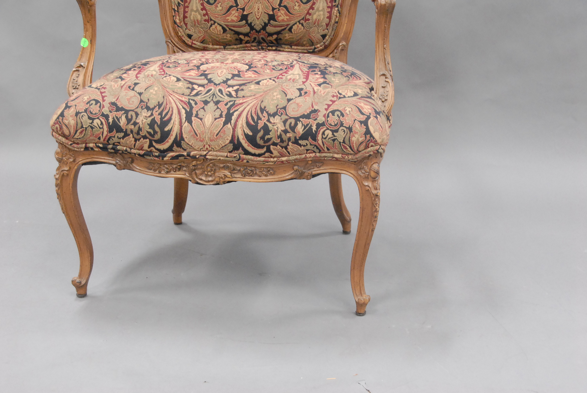 French style fauteuil with tapestry type upholstery, 20th century.