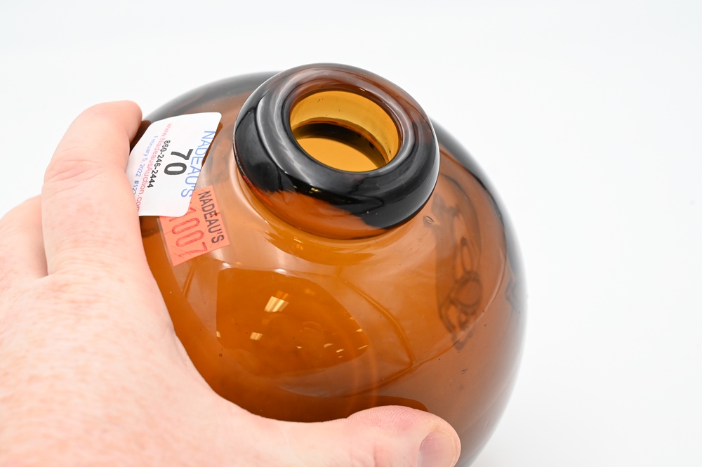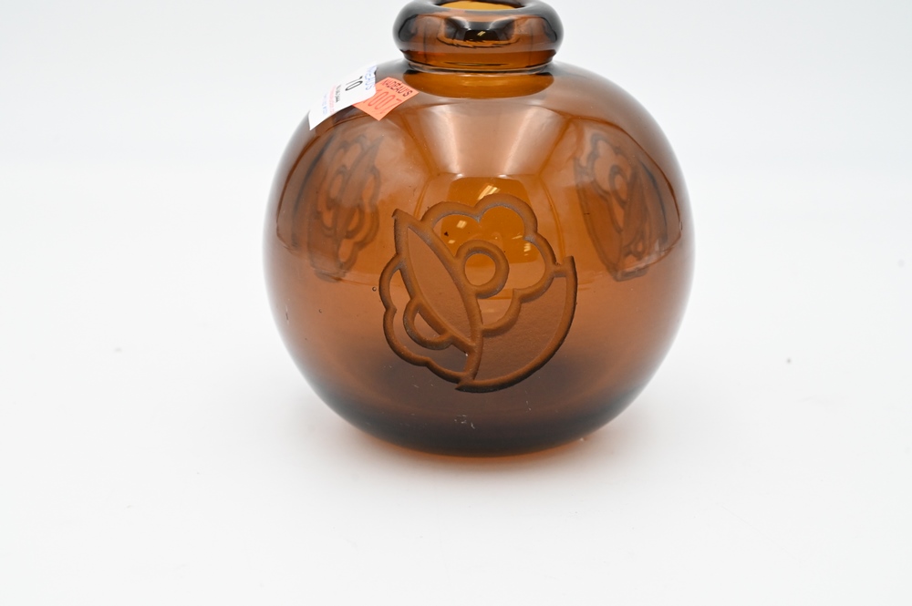 Lot 70: Jean Luce (1895-1964), amber glass vase with etched floral design, height 6 inches.
