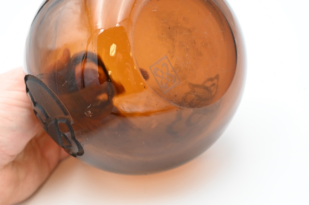 Jean Luce (1895-1964), amber glass vase with etched floral design, height 6 inches.