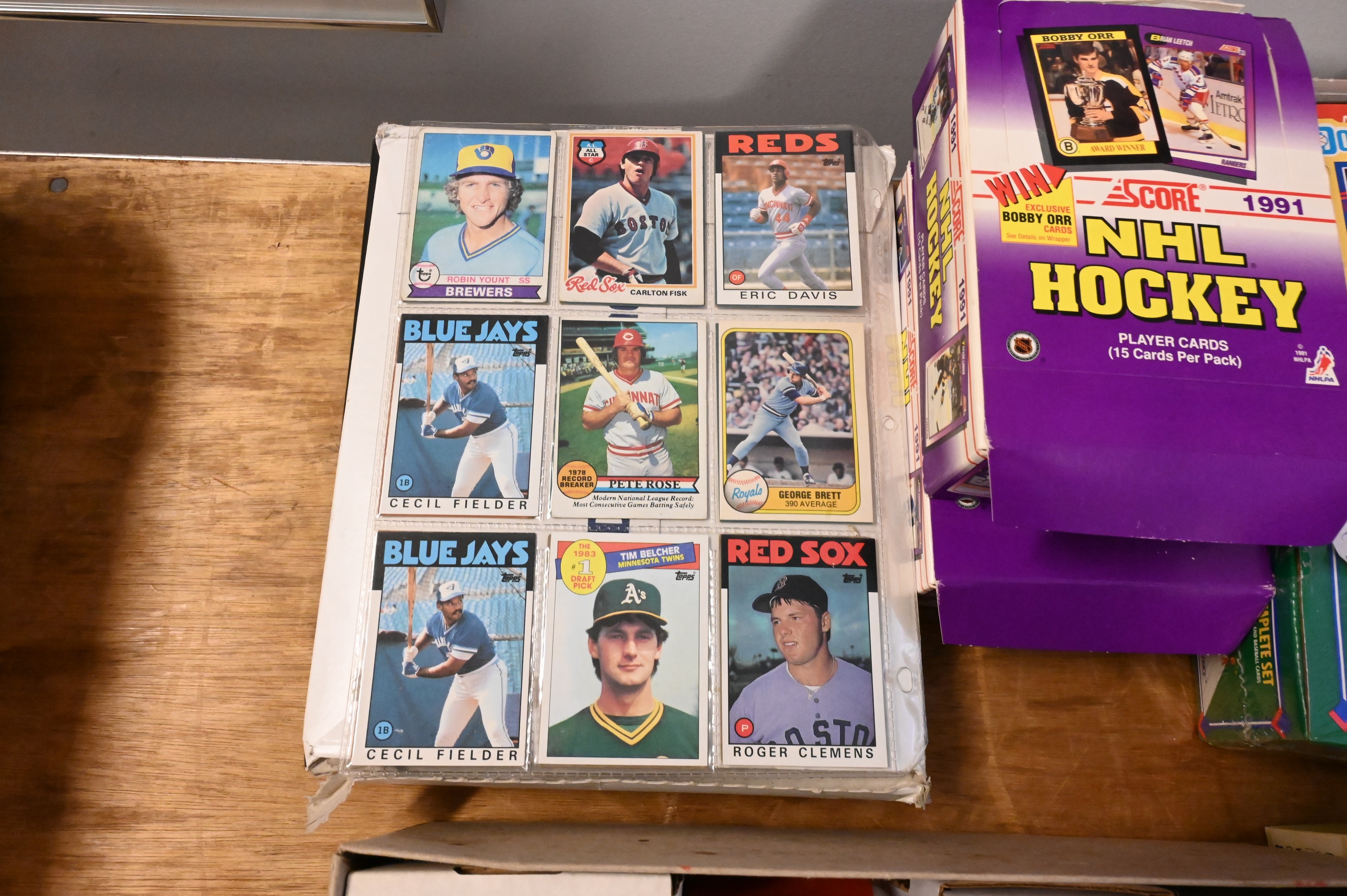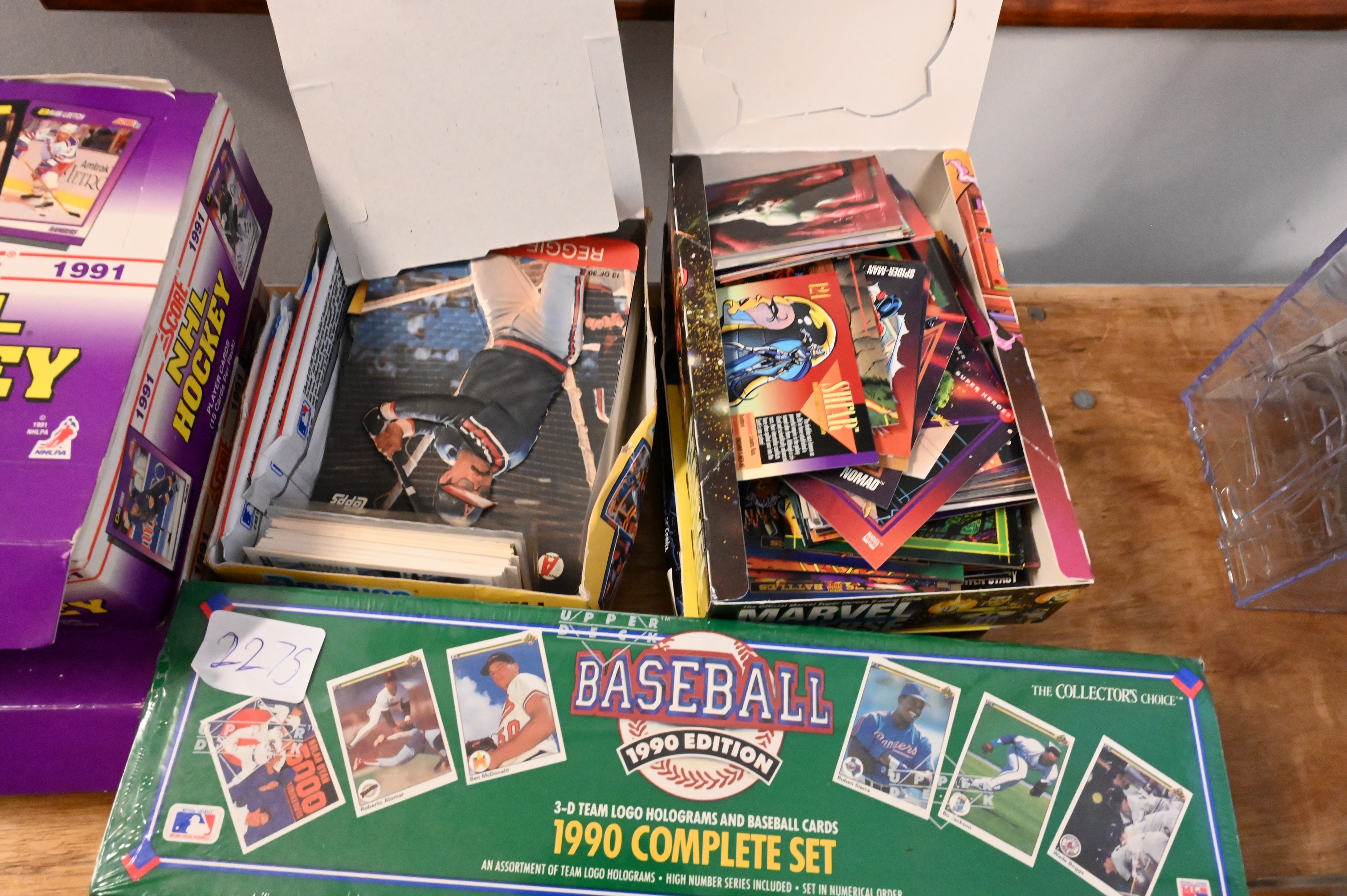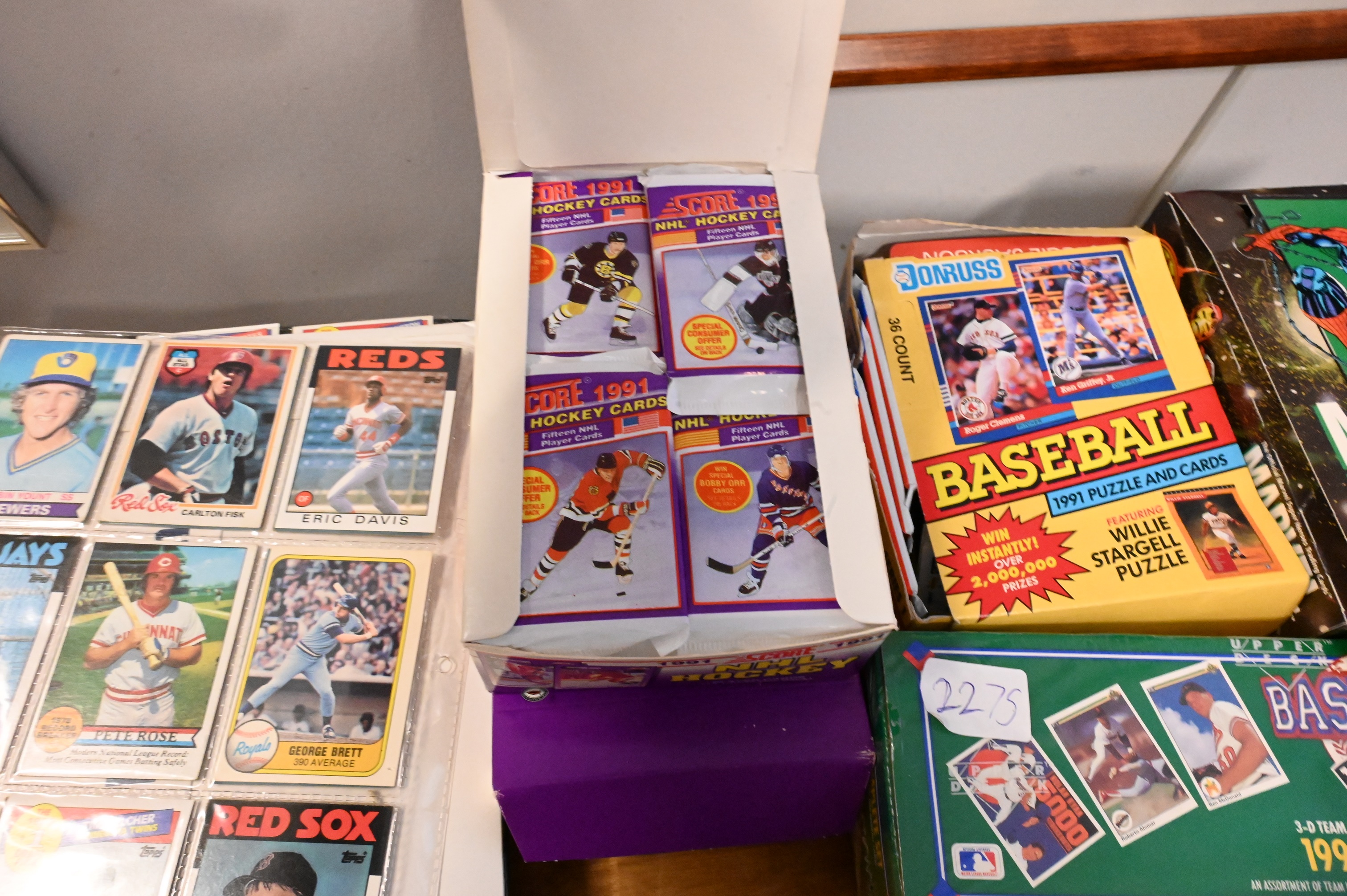 to include two boxes of 1991 NHL cards, 1990 Upper Deck baseball cards, approximately 100 other baseball cards and a large group of 1991 football cards. The set also includes five signed baseballs, large group of Marvel and DC trading cards, and a 1998 Mark Mcgwire and Sammy Sosa “Breaking the home run record” book still in original packaging, along with Signed baseballs and baseball record