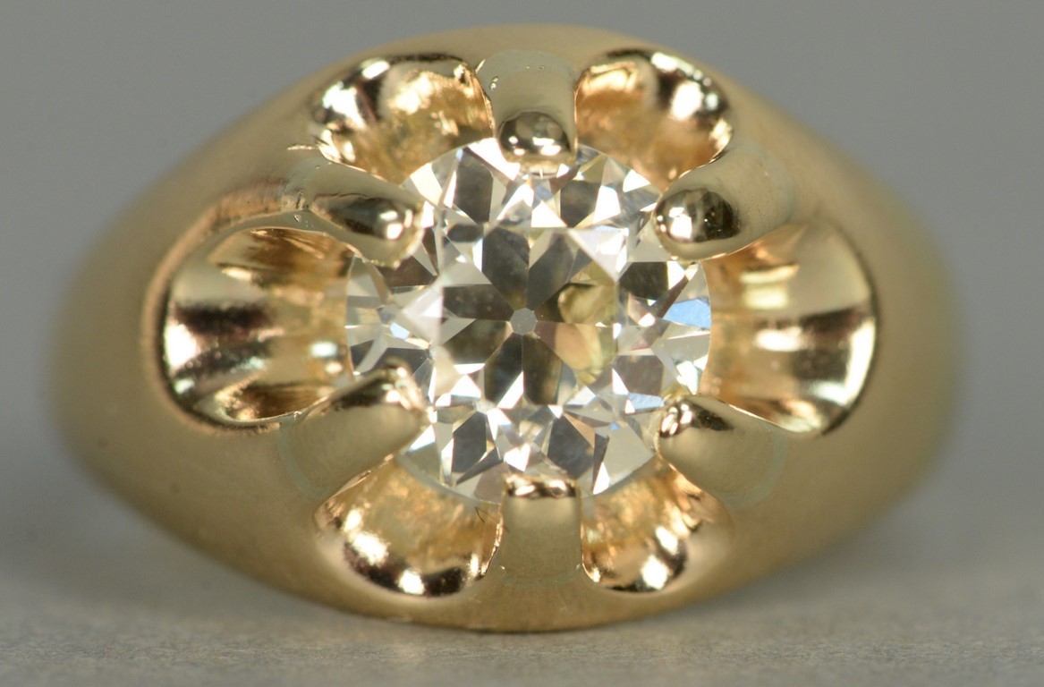 Man’s 14K gold ring set with center diamond, approximately 2.36cts.