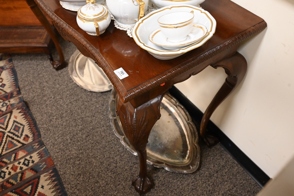 Lot 701: George II Mahogany Pier Table, having drawer on carved cabriole legs ending in ball and claw feet, partially made up of old elements…