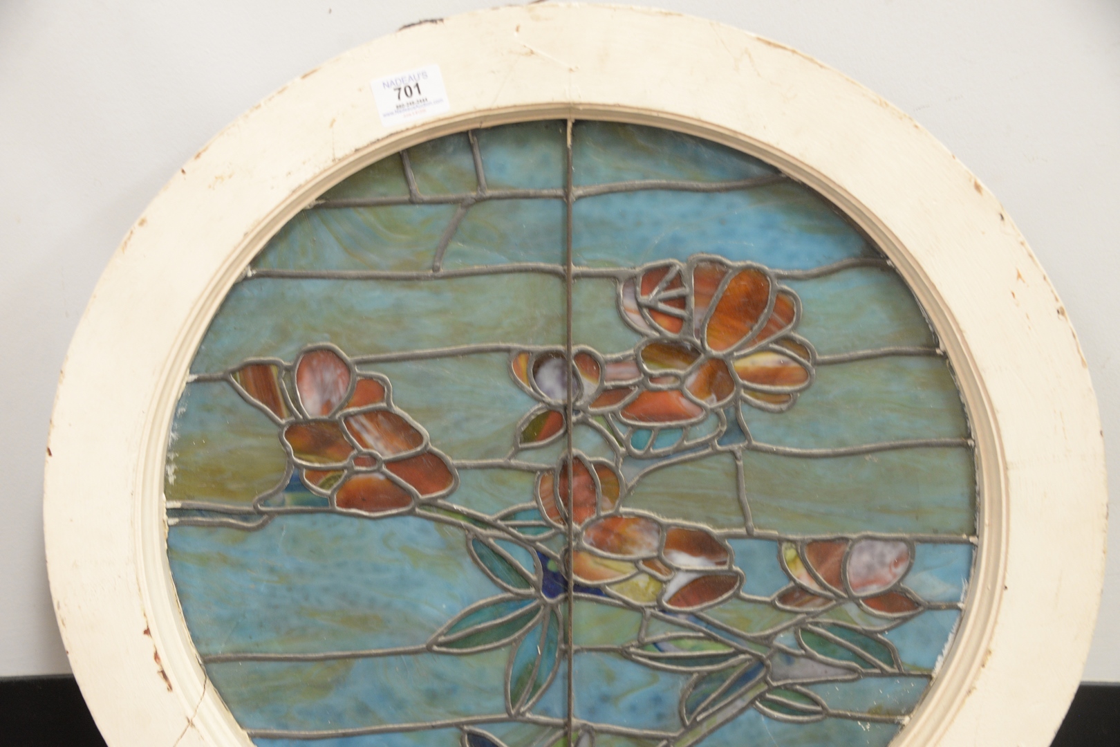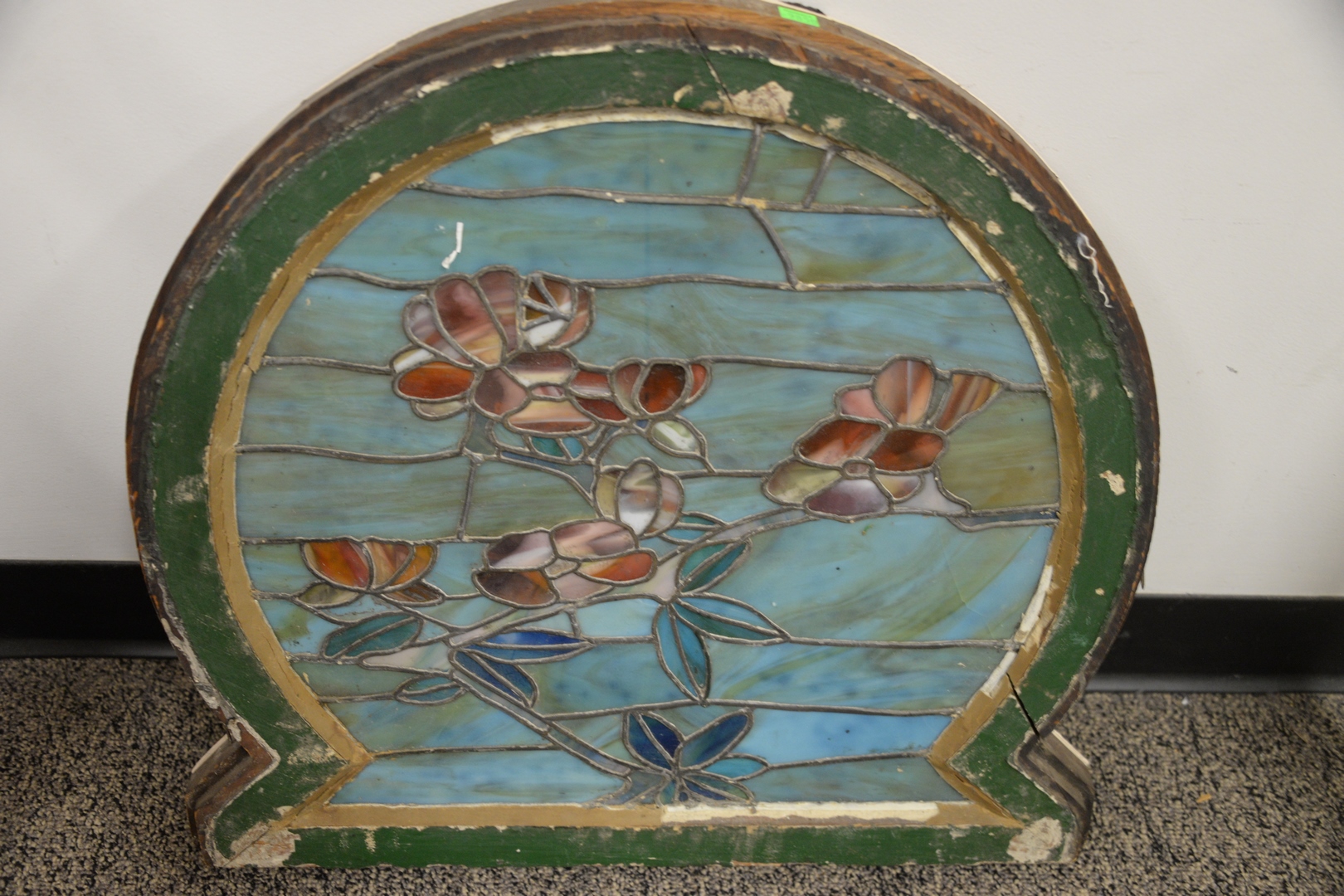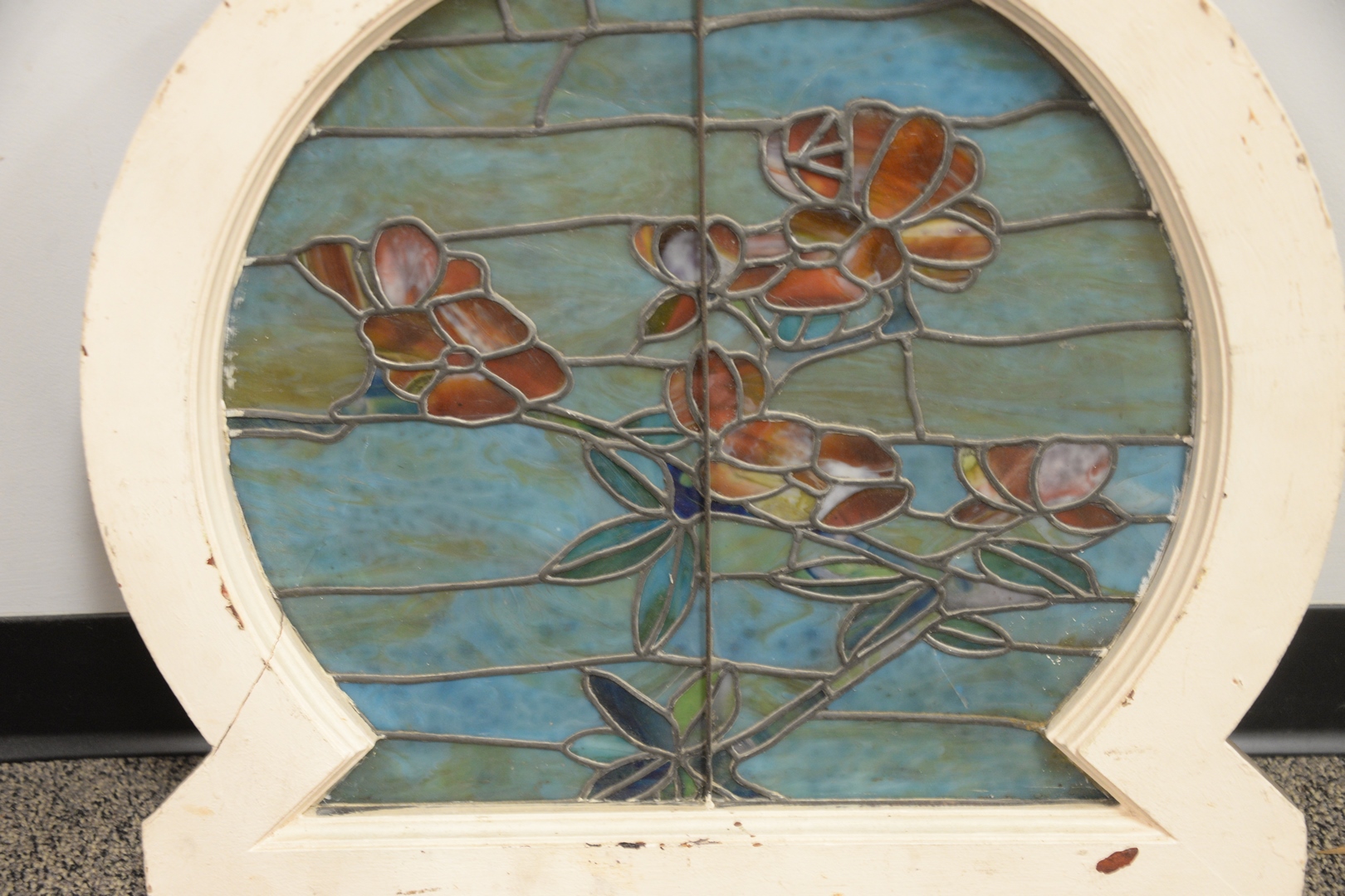Keyhole Leaded Stained Glass Window, height 23 inches, width 24 inches.