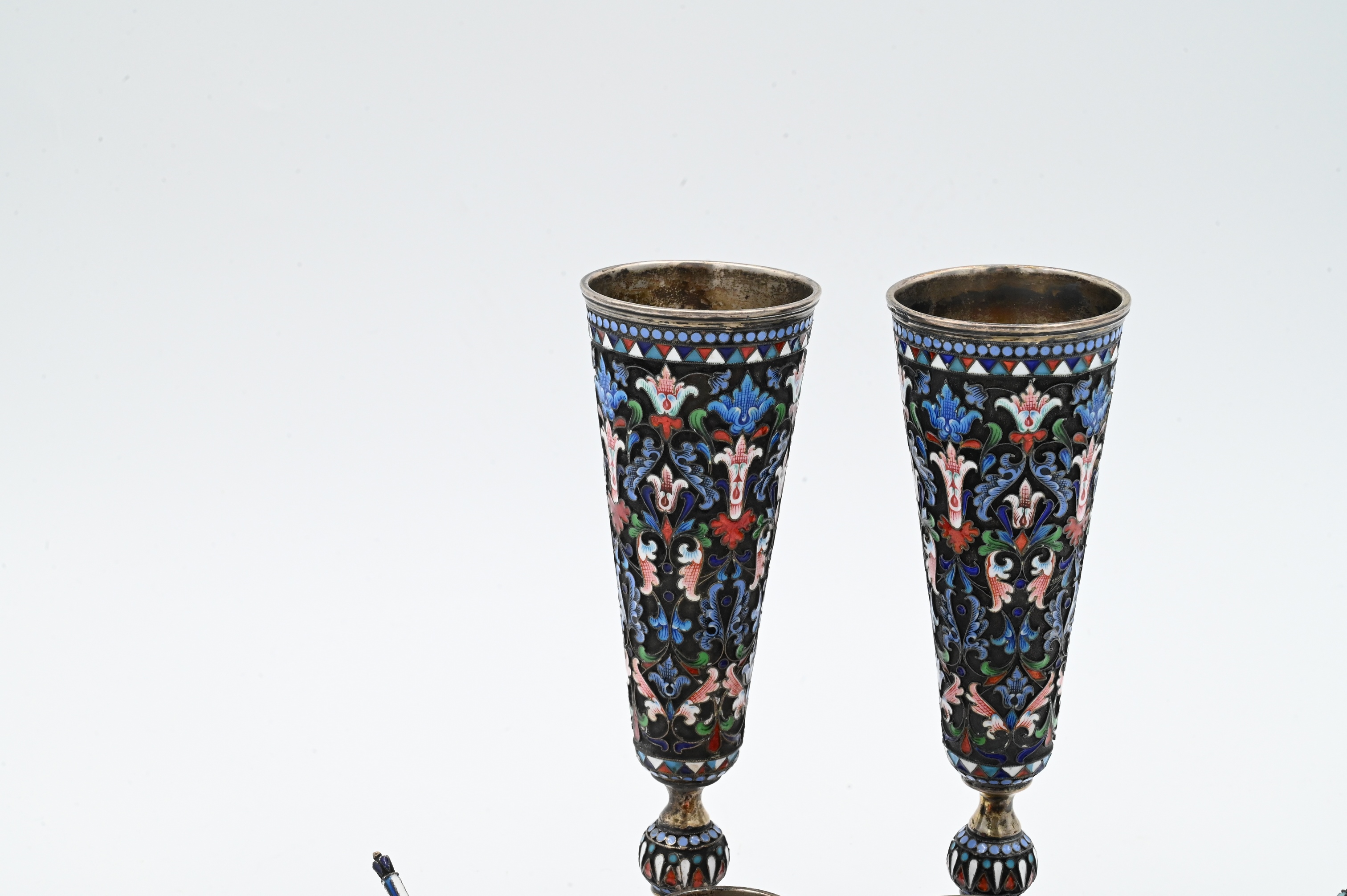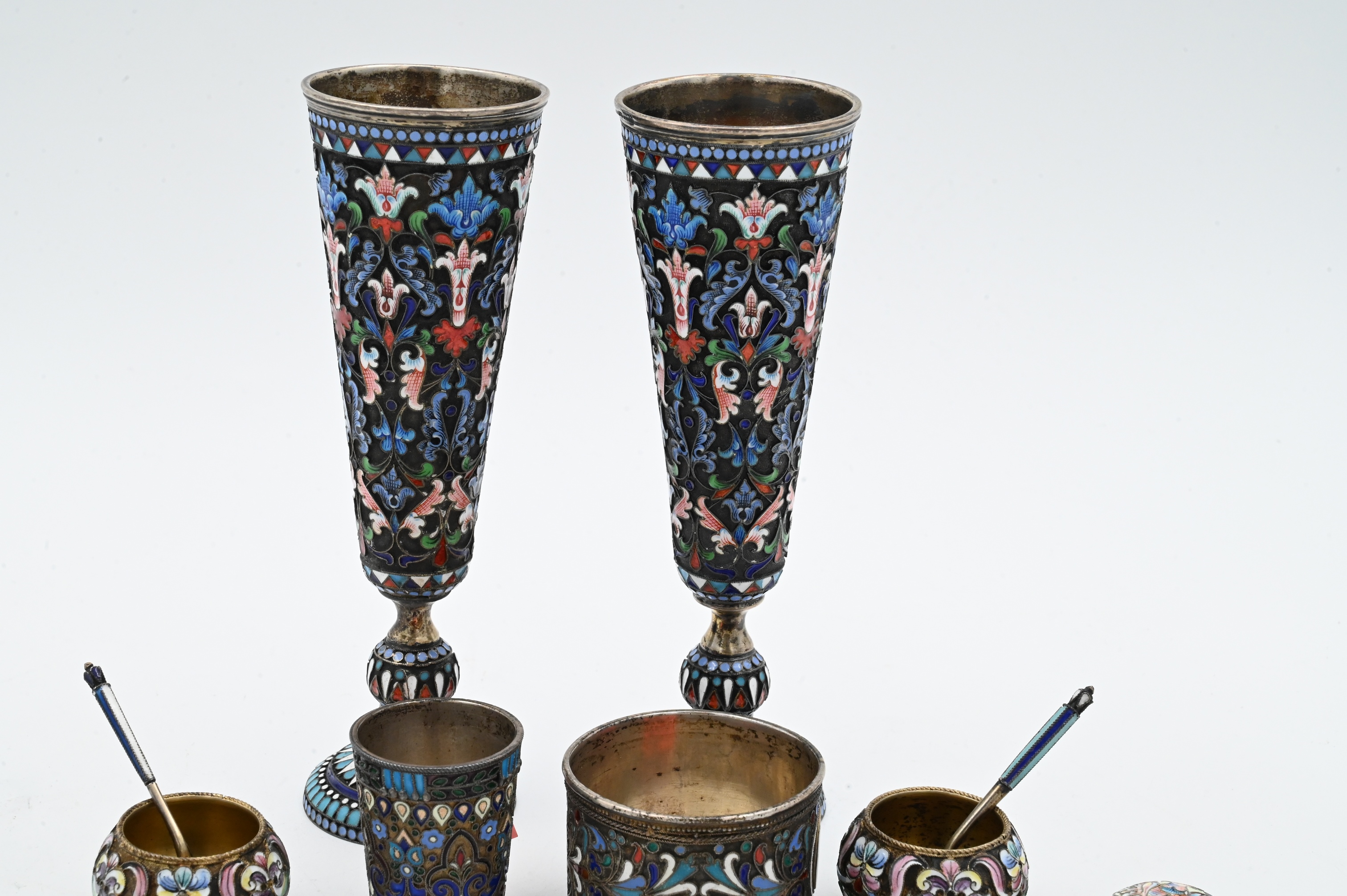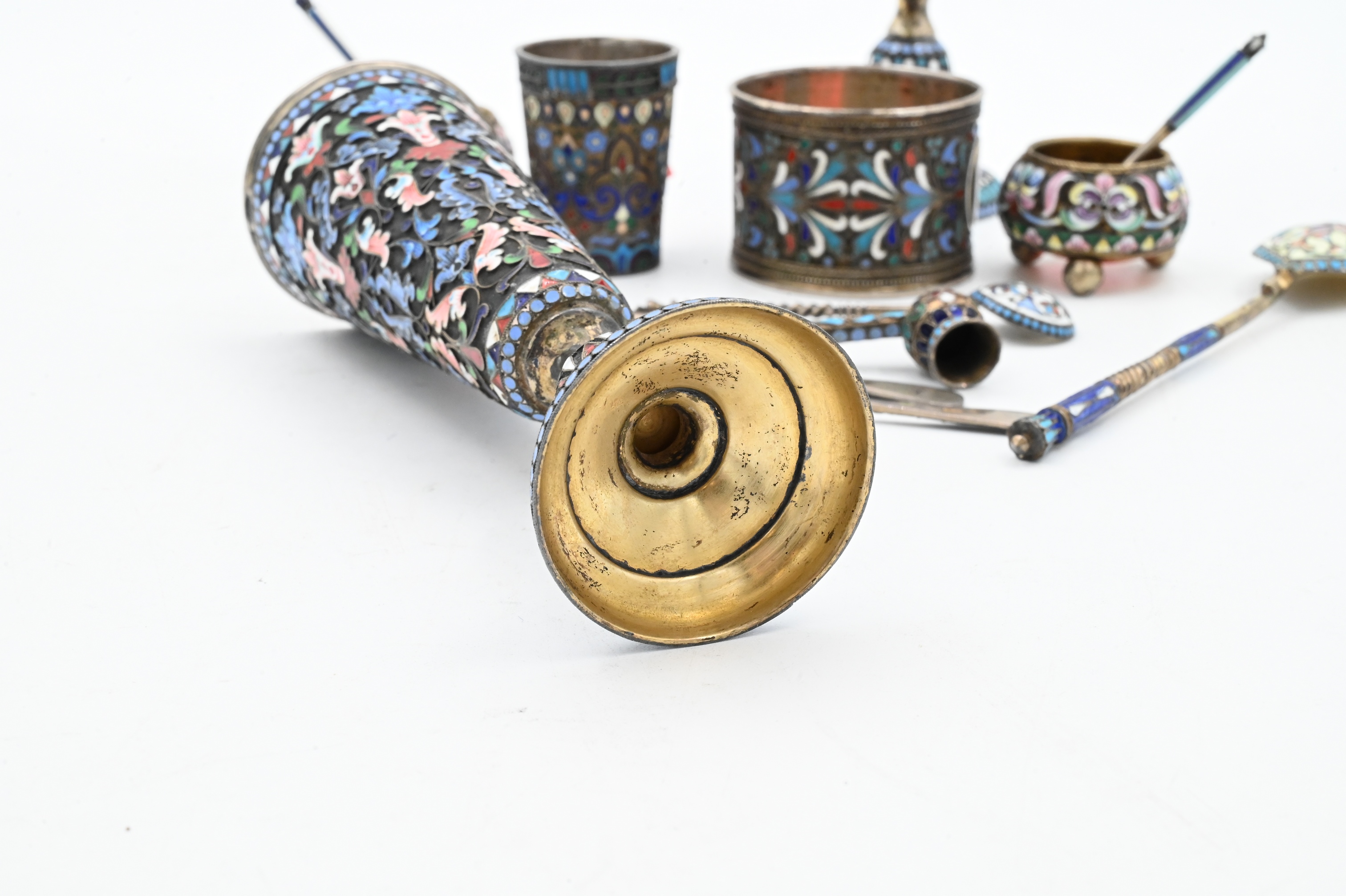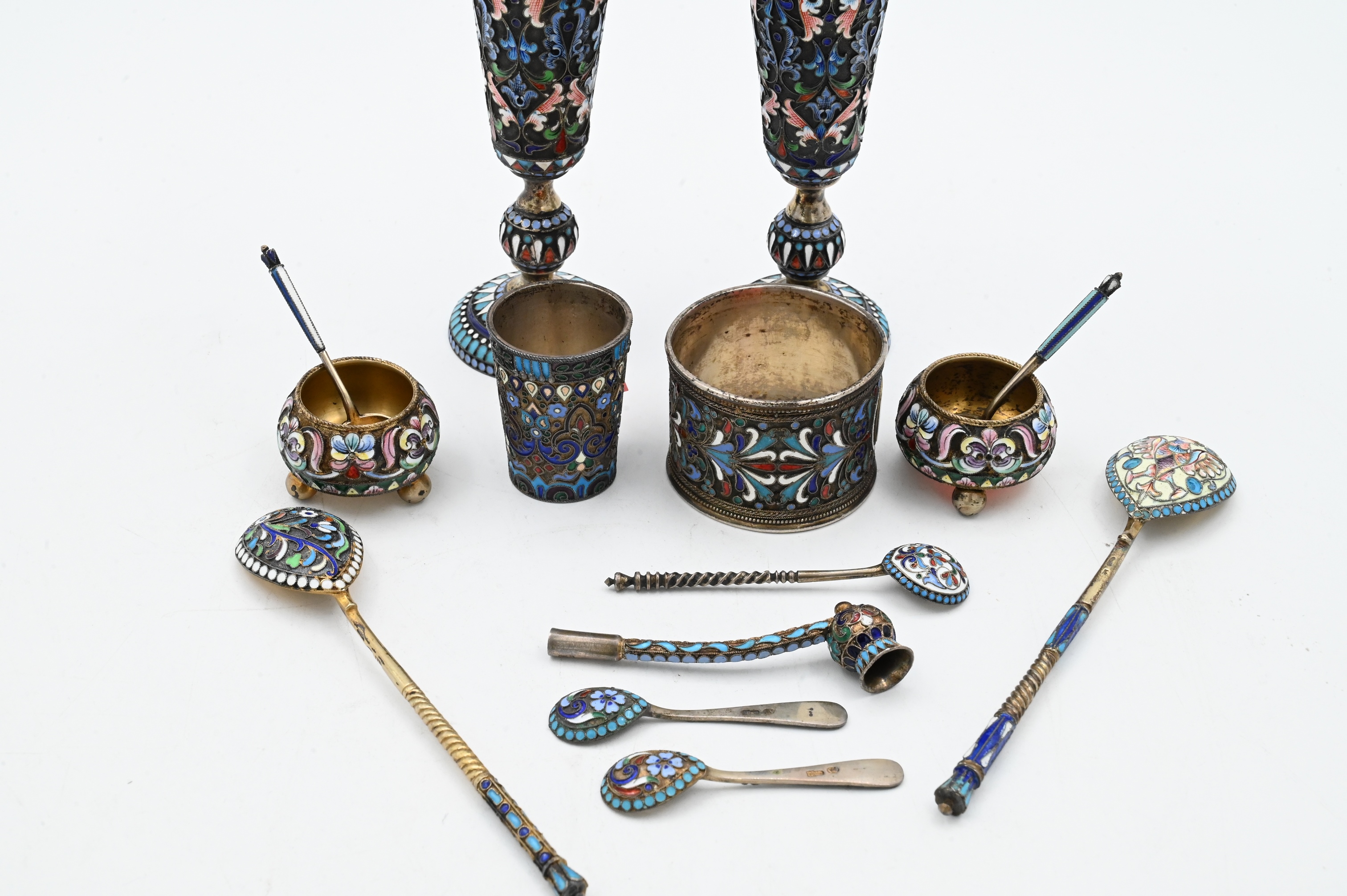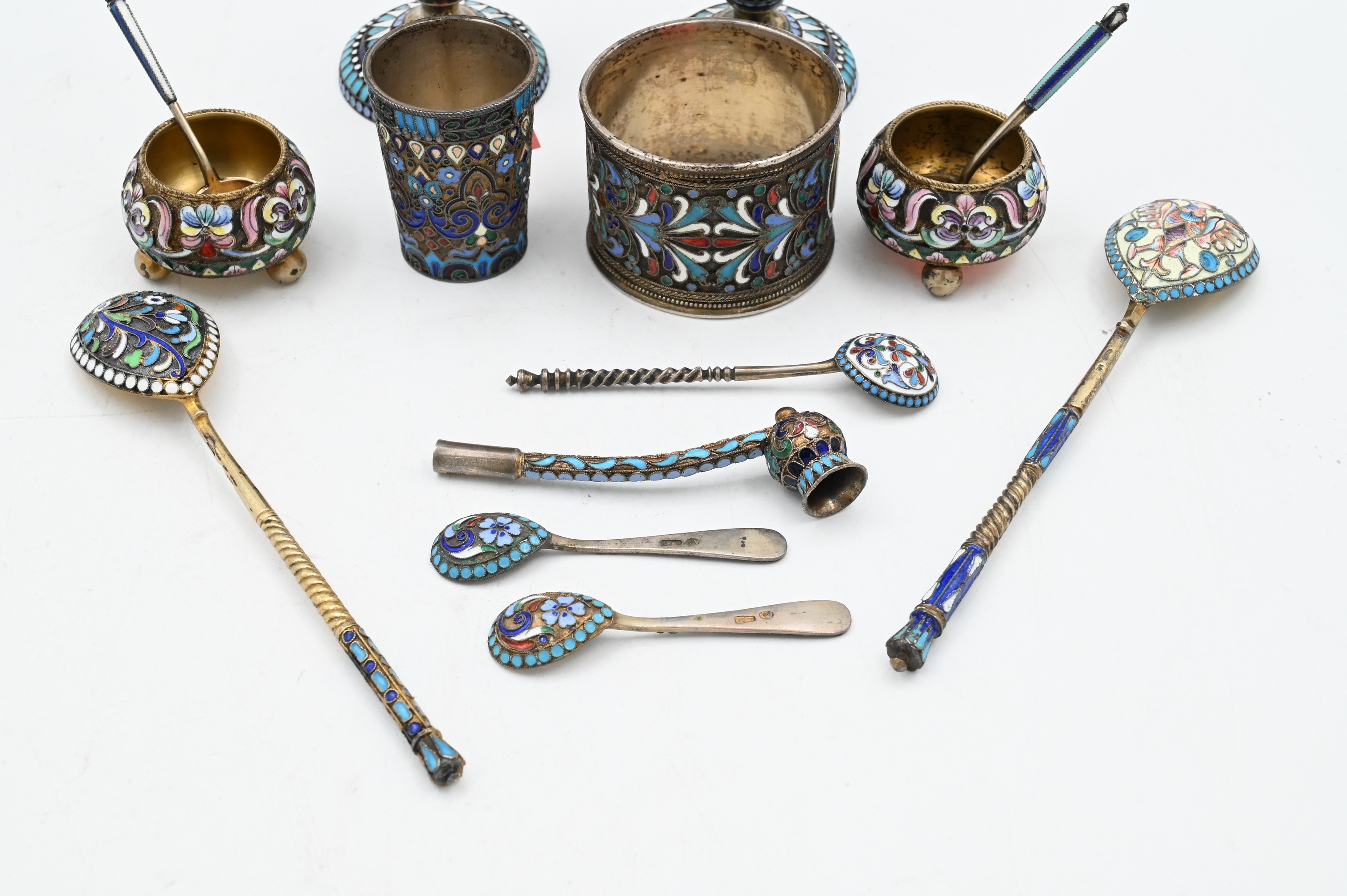 Lot 704: 14 Piece Russian Silver and Enamel Lot