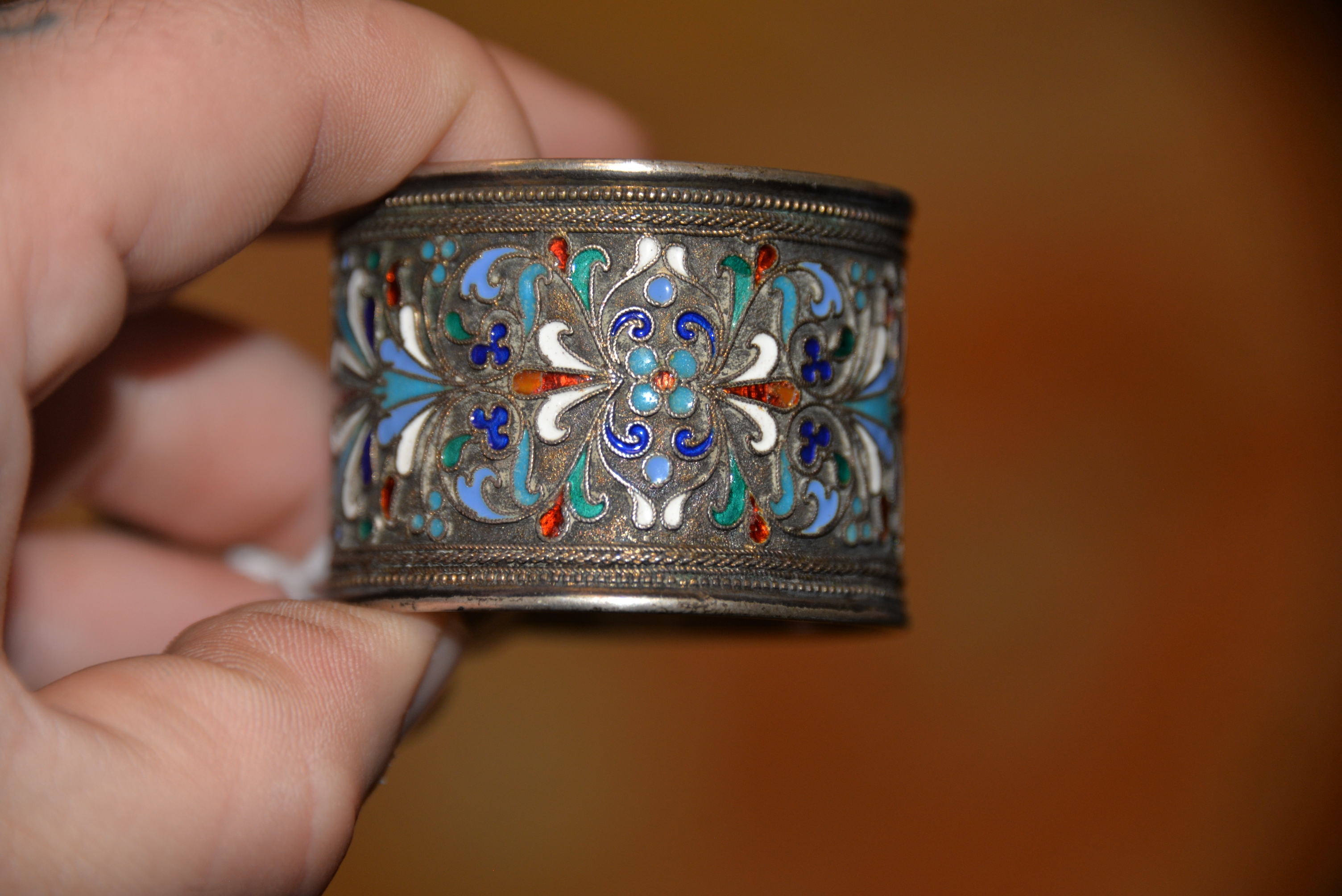 Condition: overall good condition, napkin ring and champagne with minor loss to enameling
