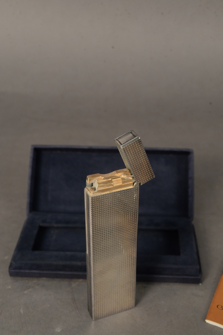 Lot 706: S.T. Dupont de Paris Silver Plated Table Lighter, marked to the underside S.T. Dupont, Paris, Made in France JP0027 in original fi…