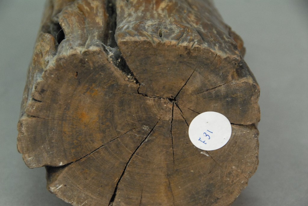 Chinese raw hardwood with copper liner for vase. ht. 16in.