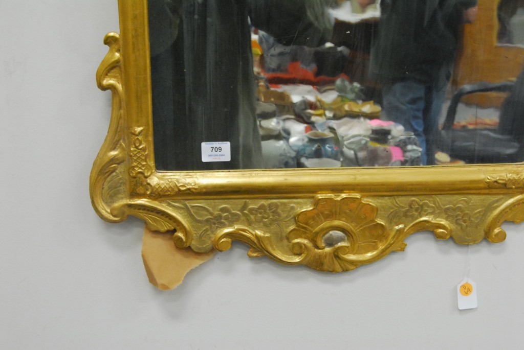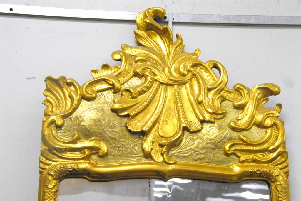 Gilt Continental mirror with shell top and bottom. – ht. 50in. wd. 20in.