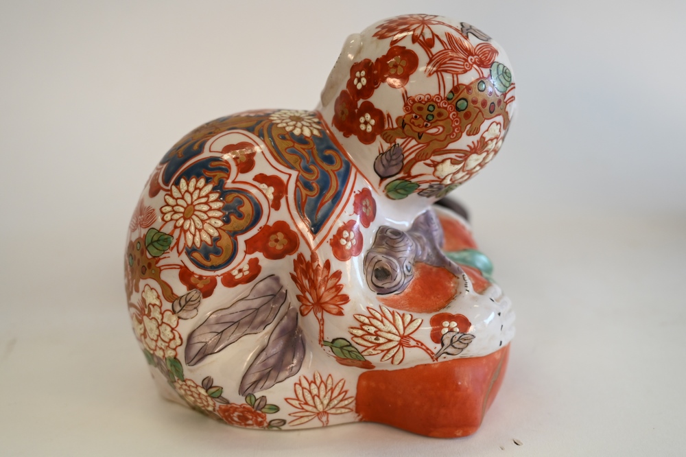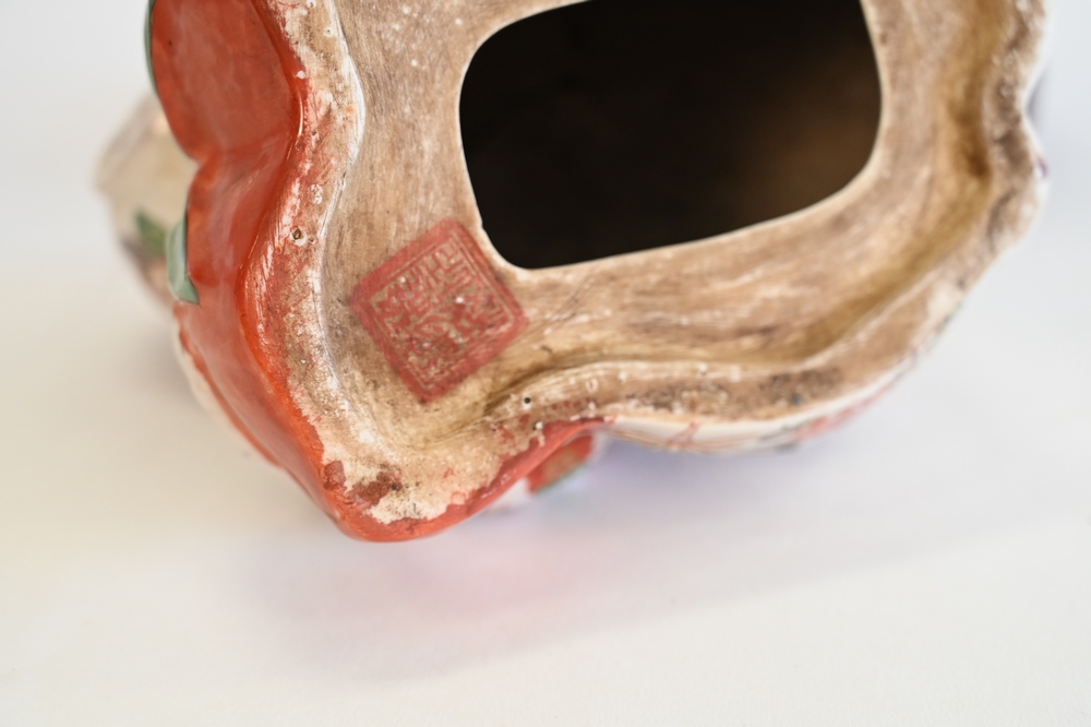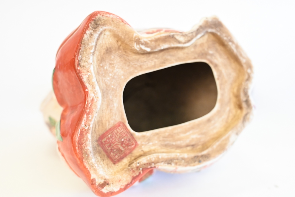 Lot 71: Chinese Ceramic Painted Monkey Figure, set on wood stand, figure height 7 1/4 inches.