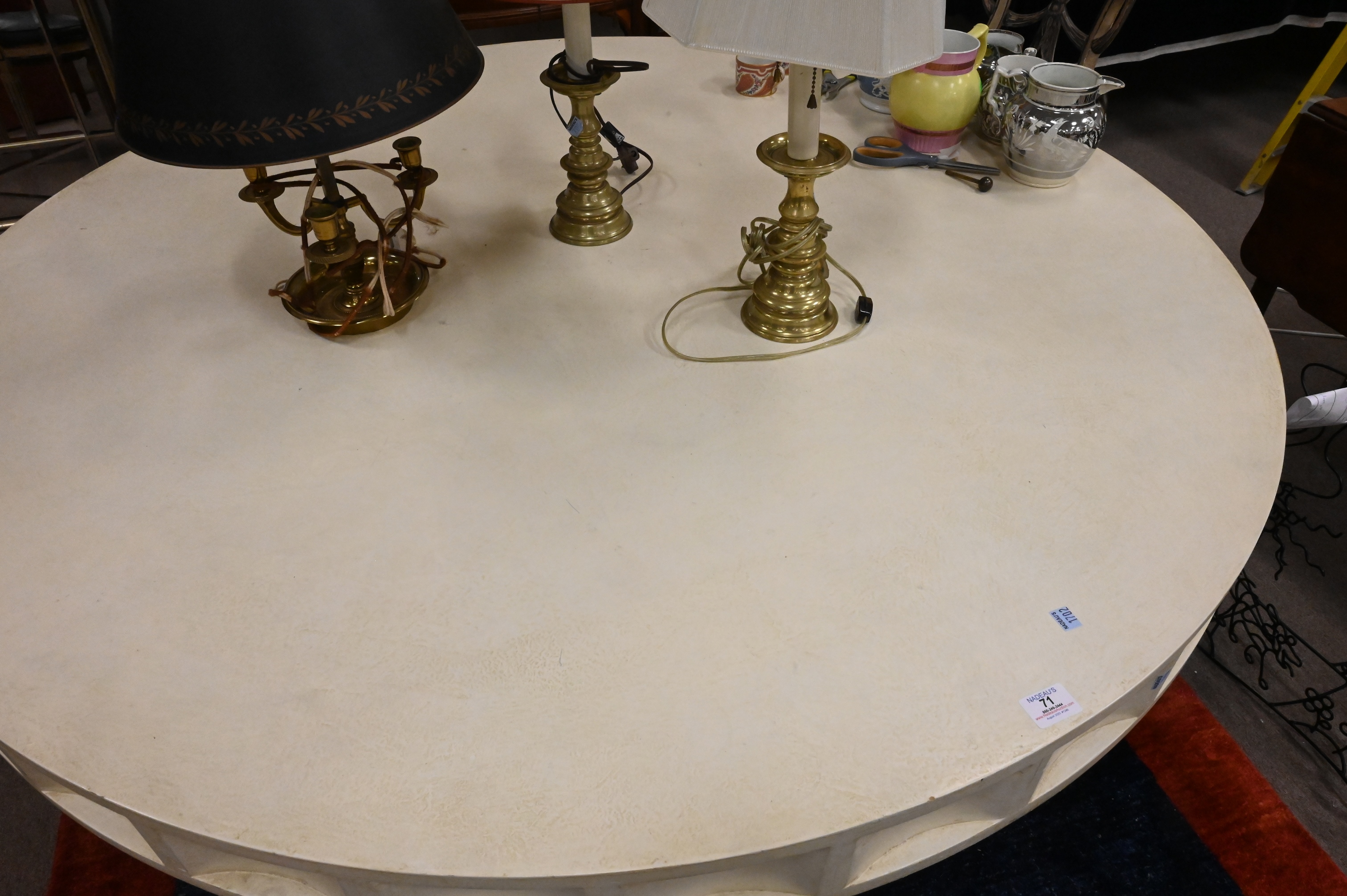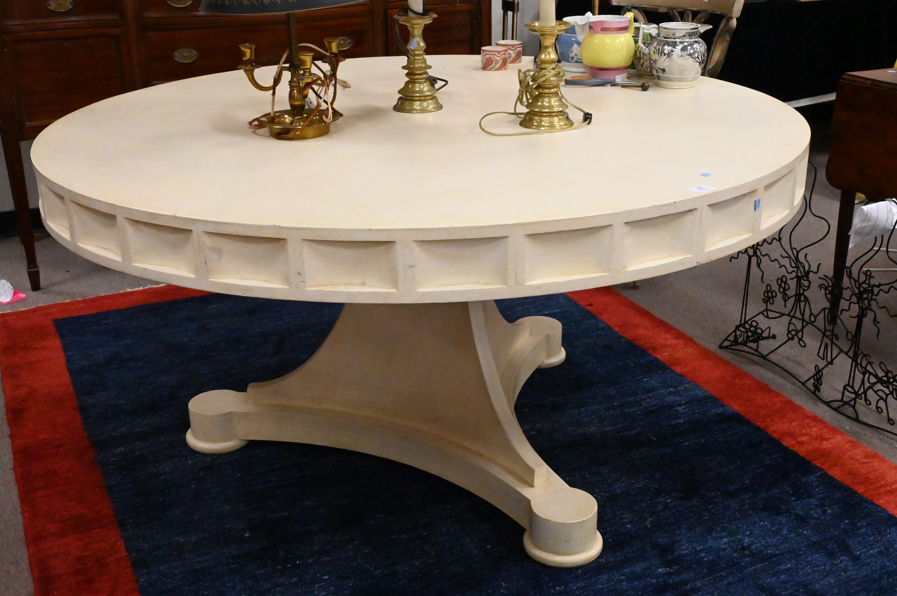 Contemporary White Pedestal Table, with round top, height 30 inches, diameter 60 inches