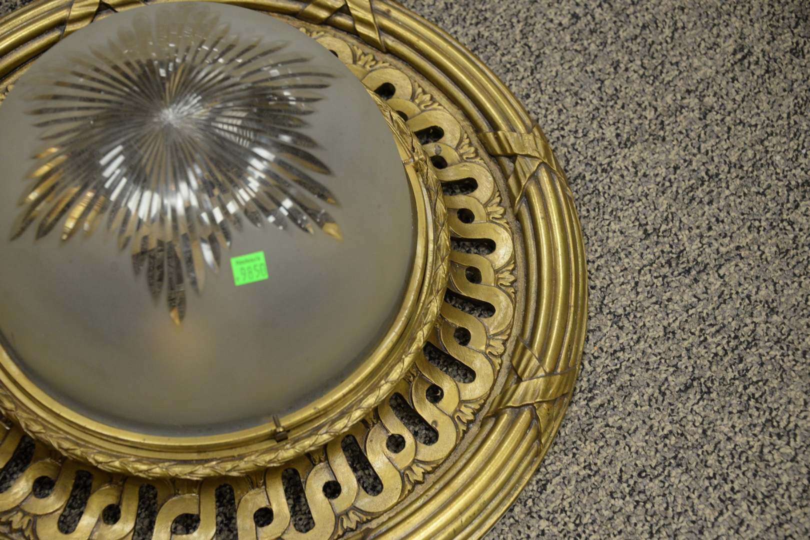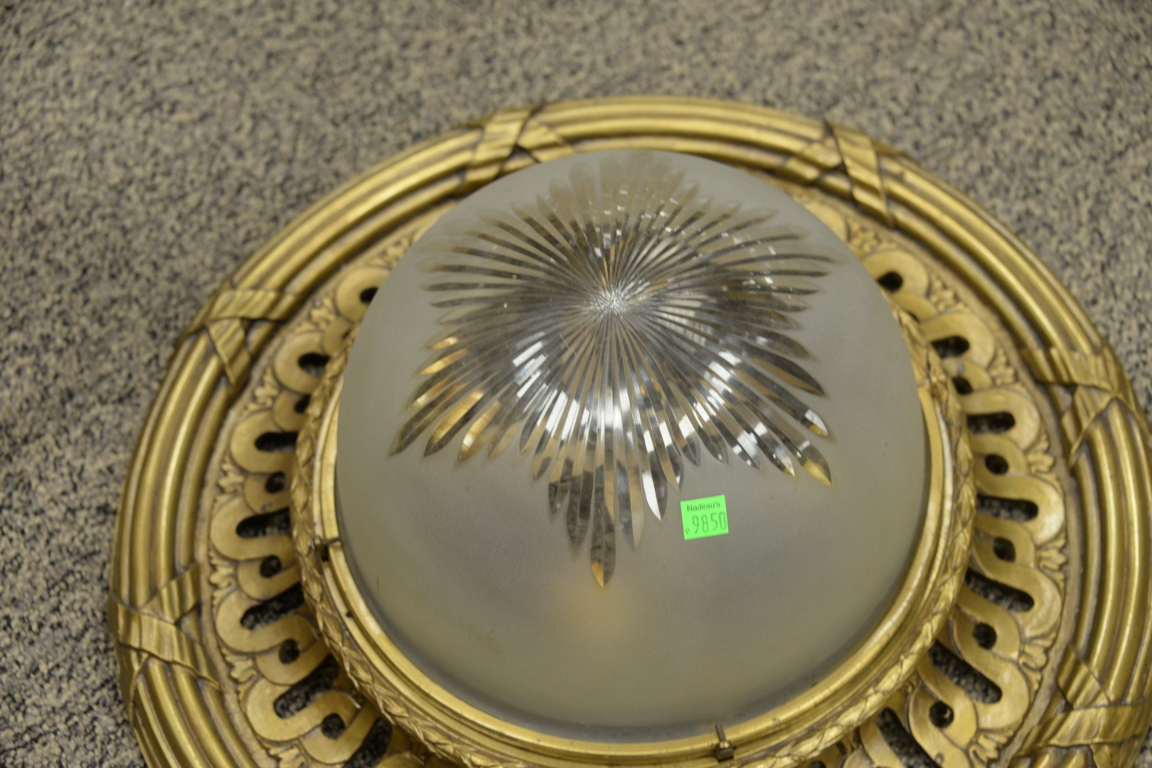 Lot 71: French Bronze Ceiling Light, having glass dome shade with bronze frame, height 9 inches, diameter 20 inches.
