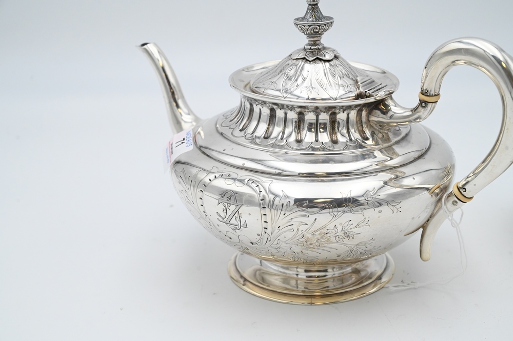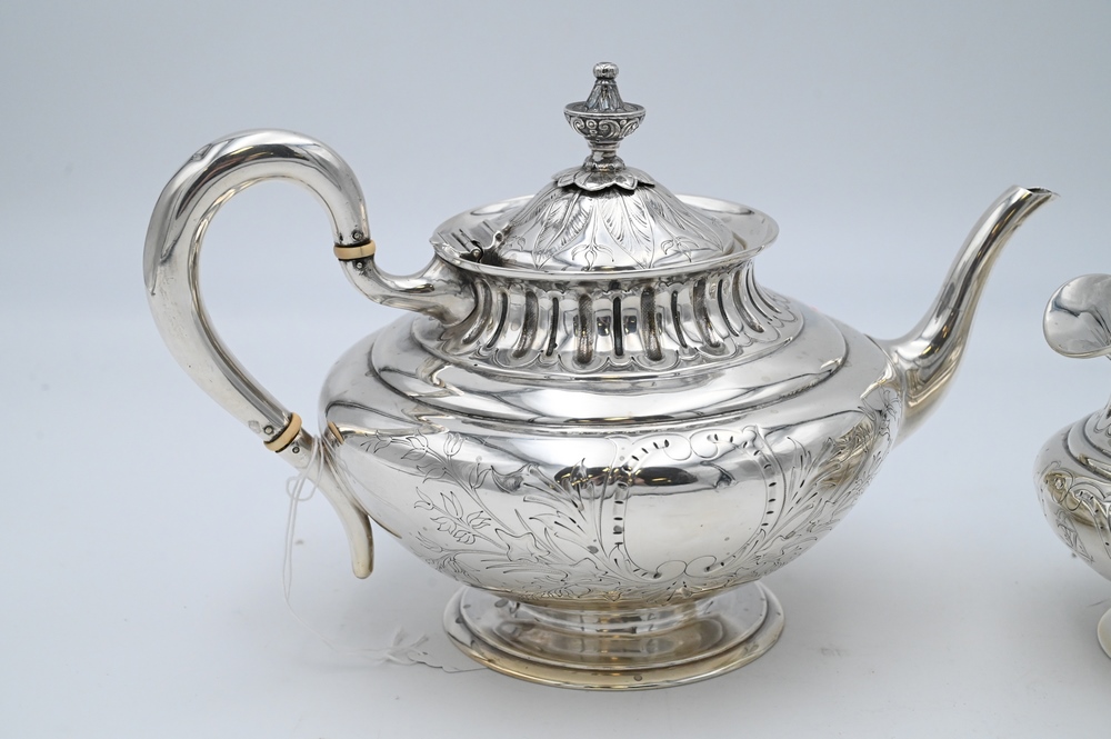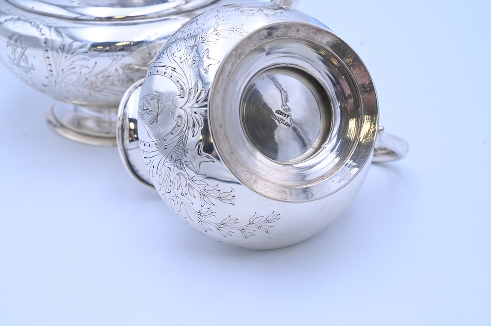 Lot 71: French Silver Teapot and Creamer, marked Mae Mayer Paris, (handle loose), teapot height 7 inches, creamer height 5 inches, 32 t.oz.