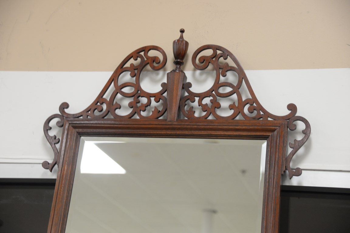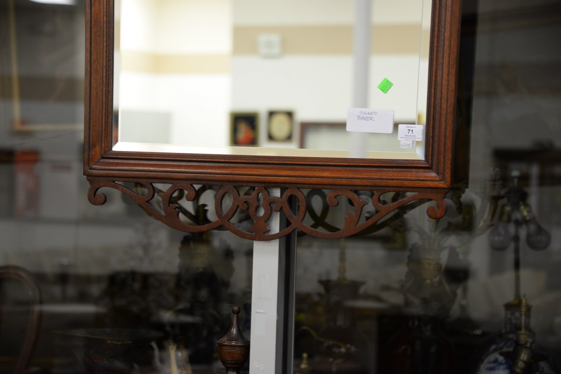 Large Baker Chippendale style mahogany mirror, signed Baker, 52 x 30.