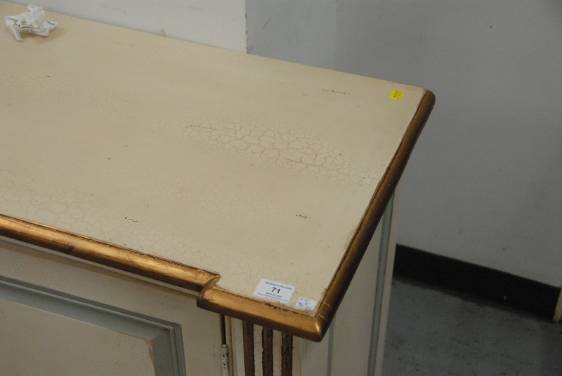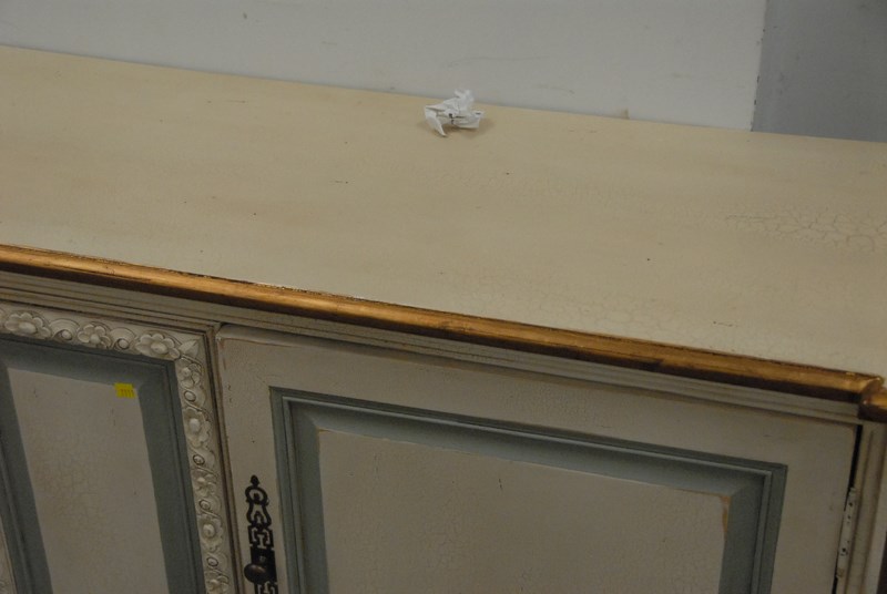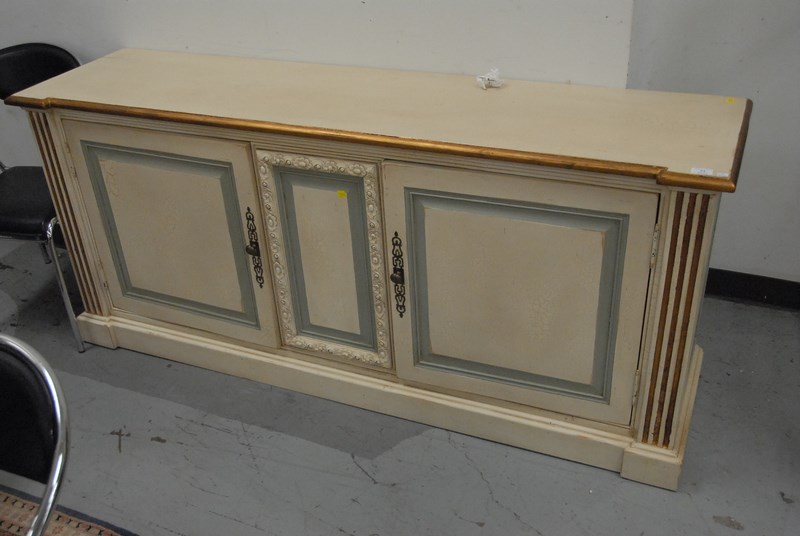 Paint decorated credenza with two doors, ht. 31in. wd. 70in. dp. 18 1/2in.