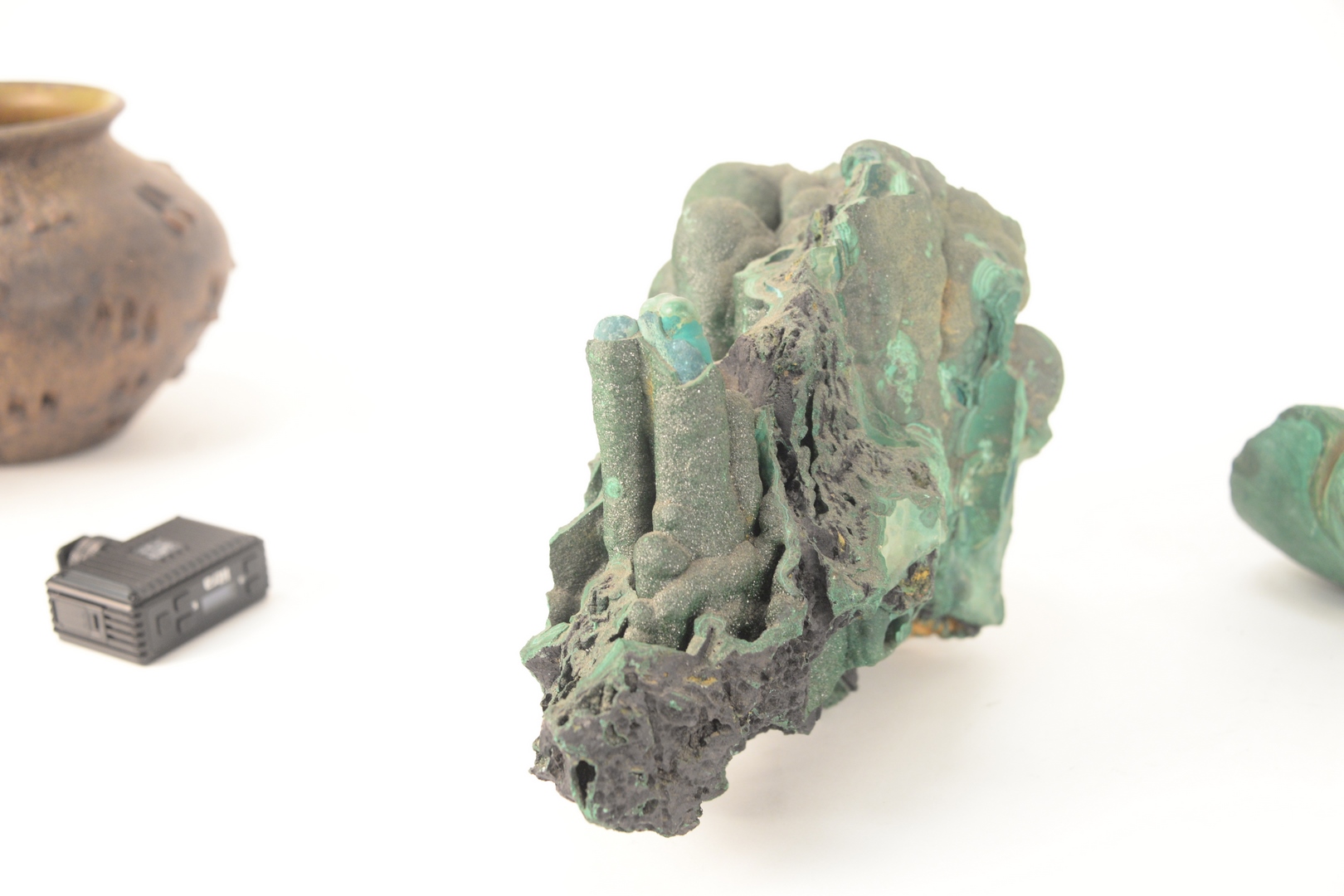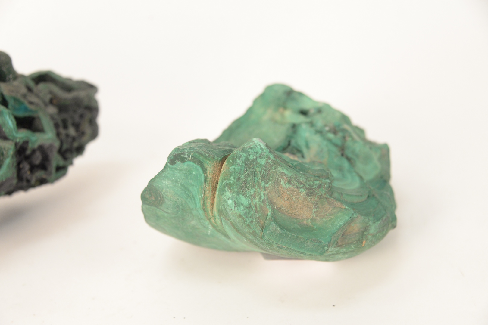 Pair of Malachite Specimens, largest 6 1/2″ x 10 1/2″ x 5 1/2″.