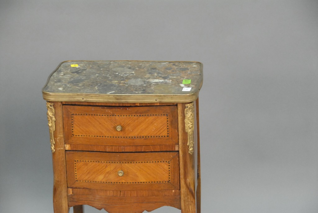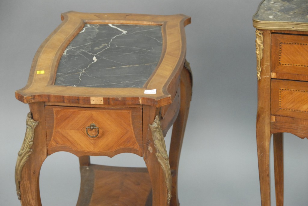 Two Louis XV style marble top stands one marble as is and small marble missing, ht. 29in. wd. 14in.