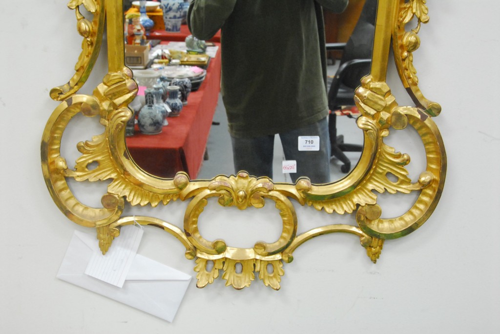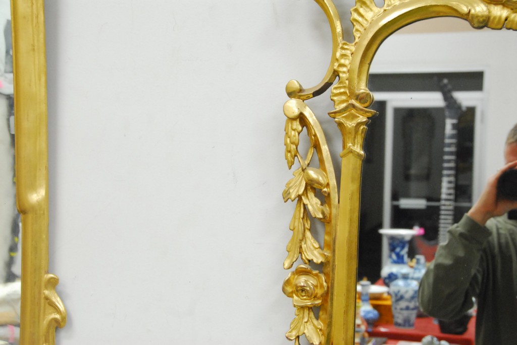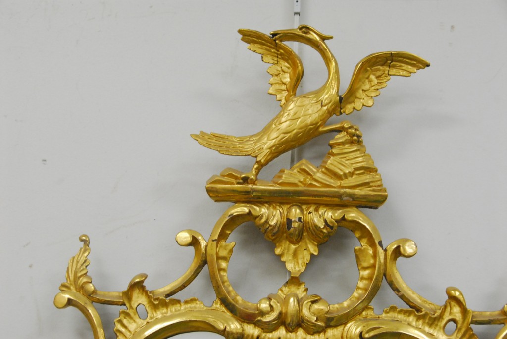 Fineberg gilt mirror with phoenix bird top and open work. – ht. 55in. wd. 29in.