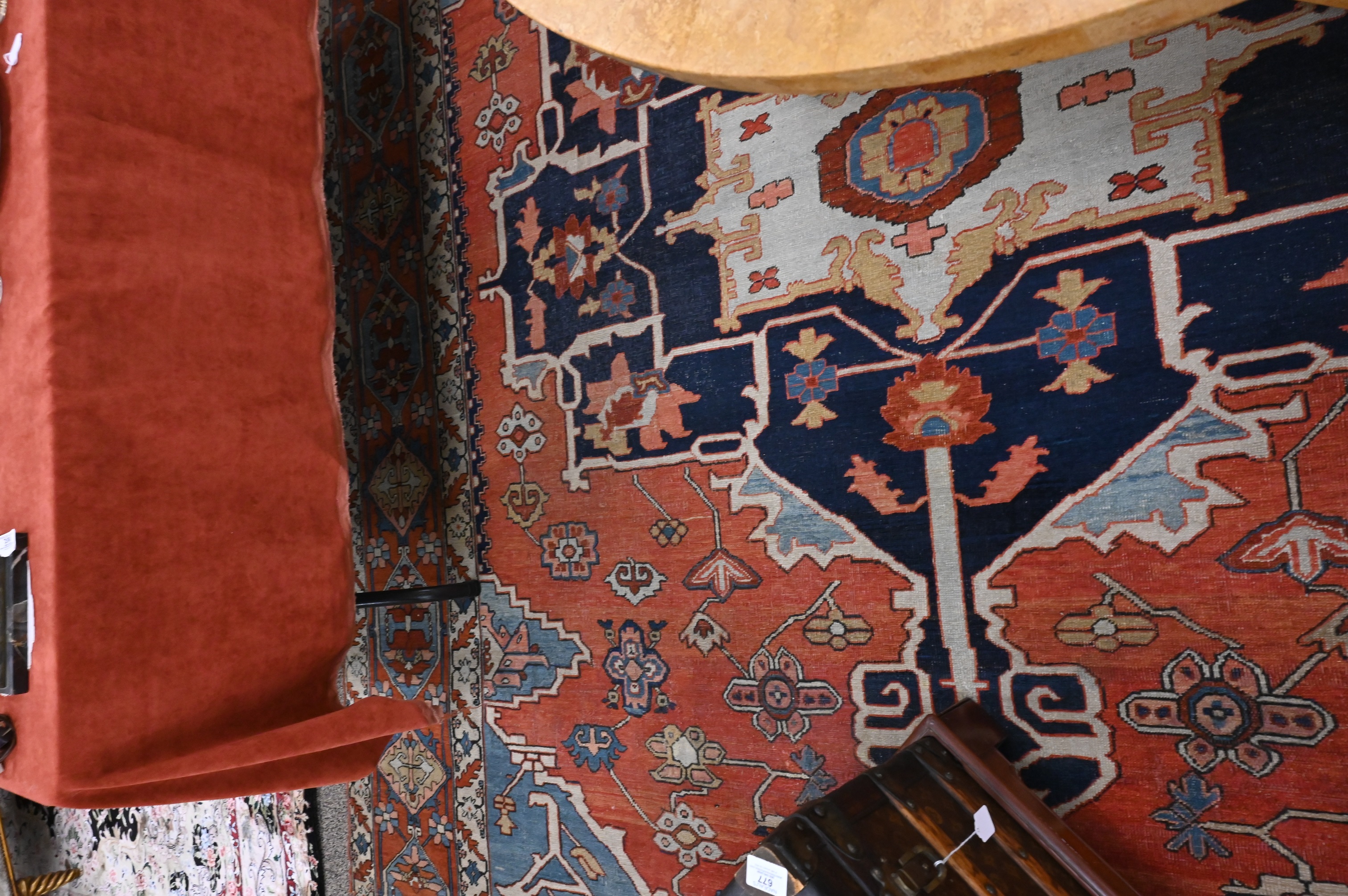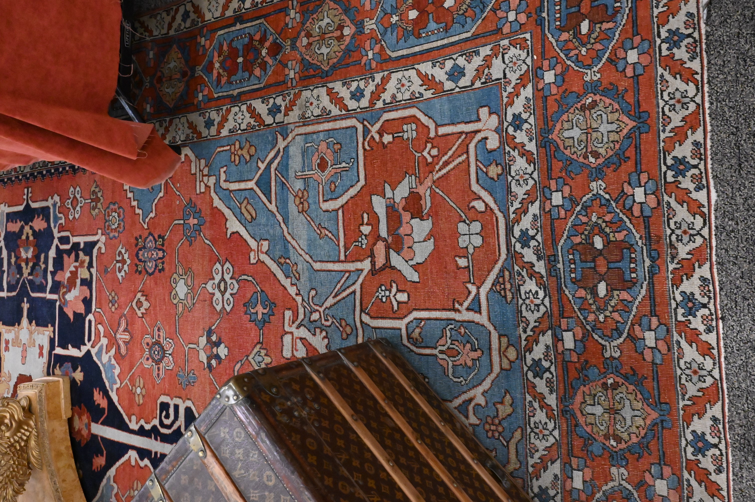 Condition: presents well, no fringe present, one end with small cuts, slight sun fading to one corner