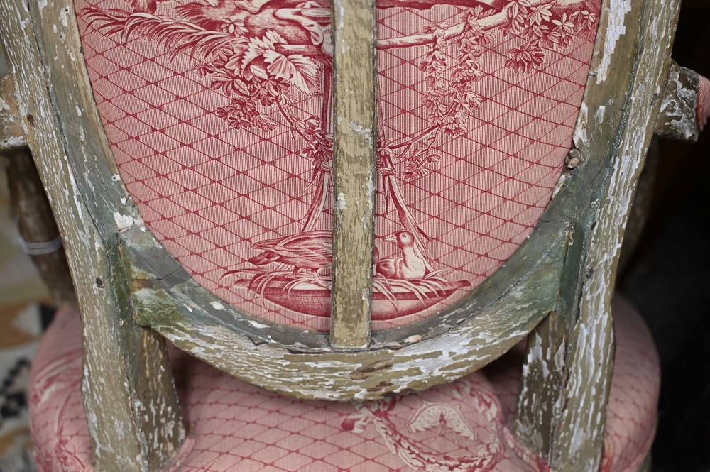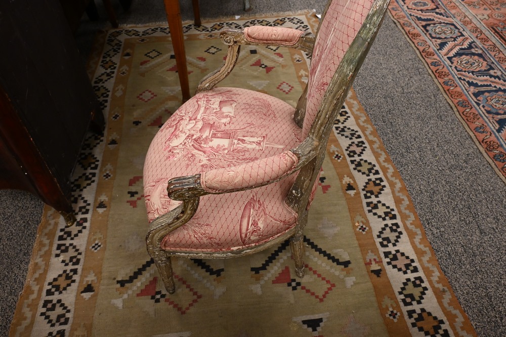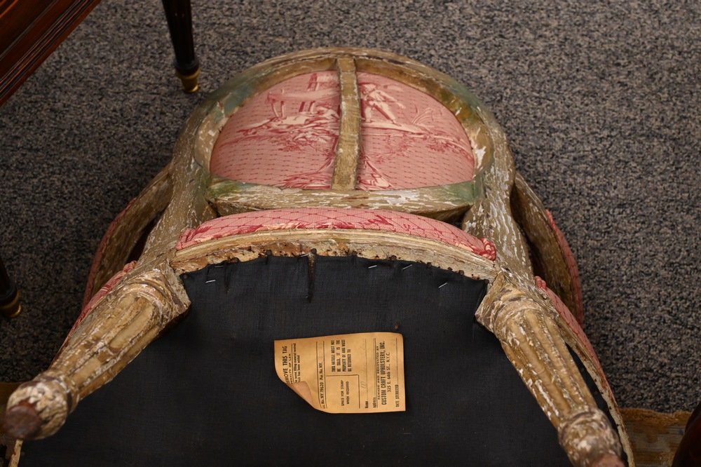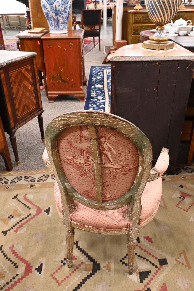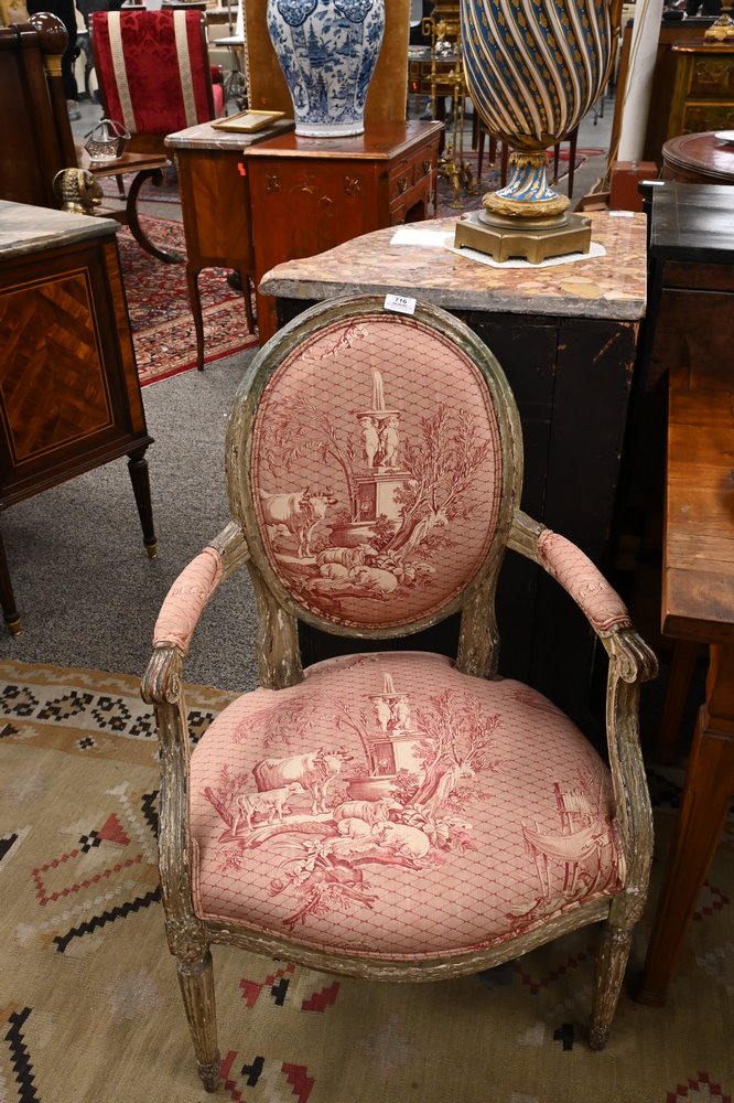 Lot 716: Louis XVI Open Armchair, in old off white paint, height 35 1/2 inches.