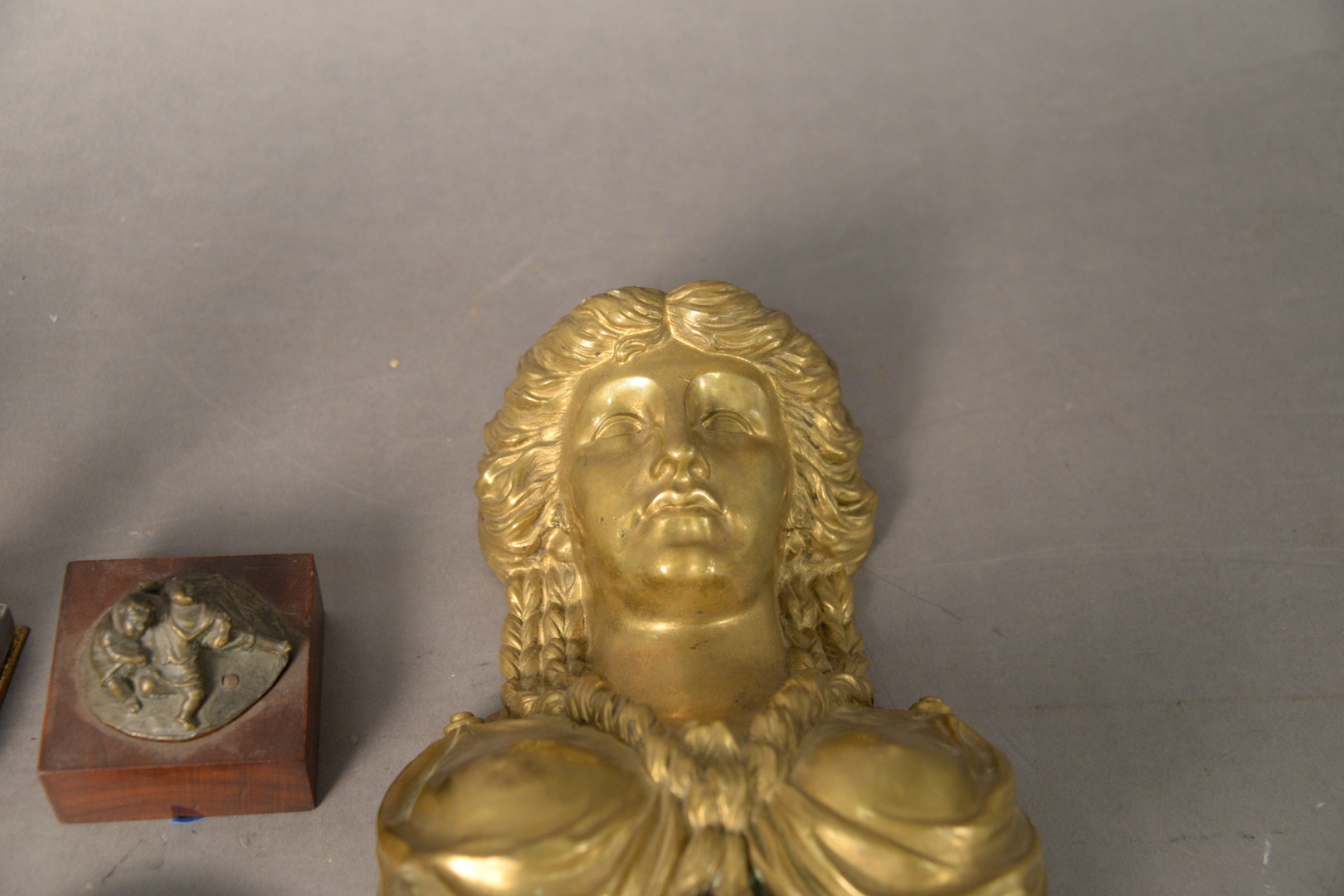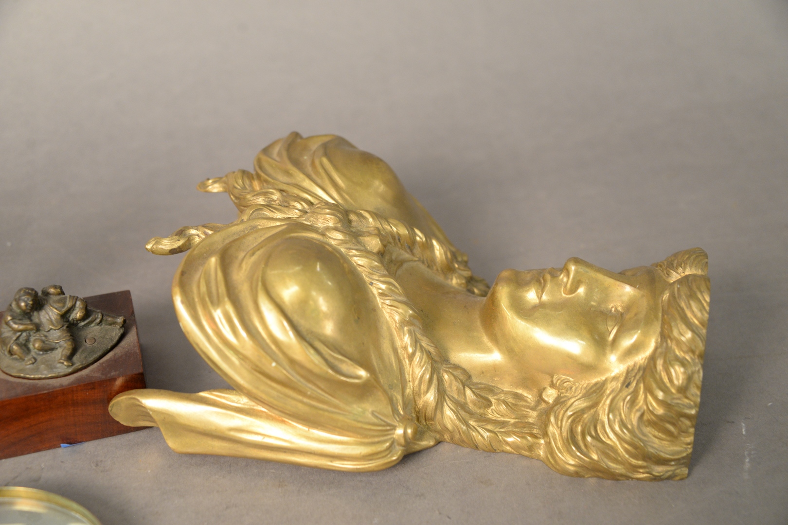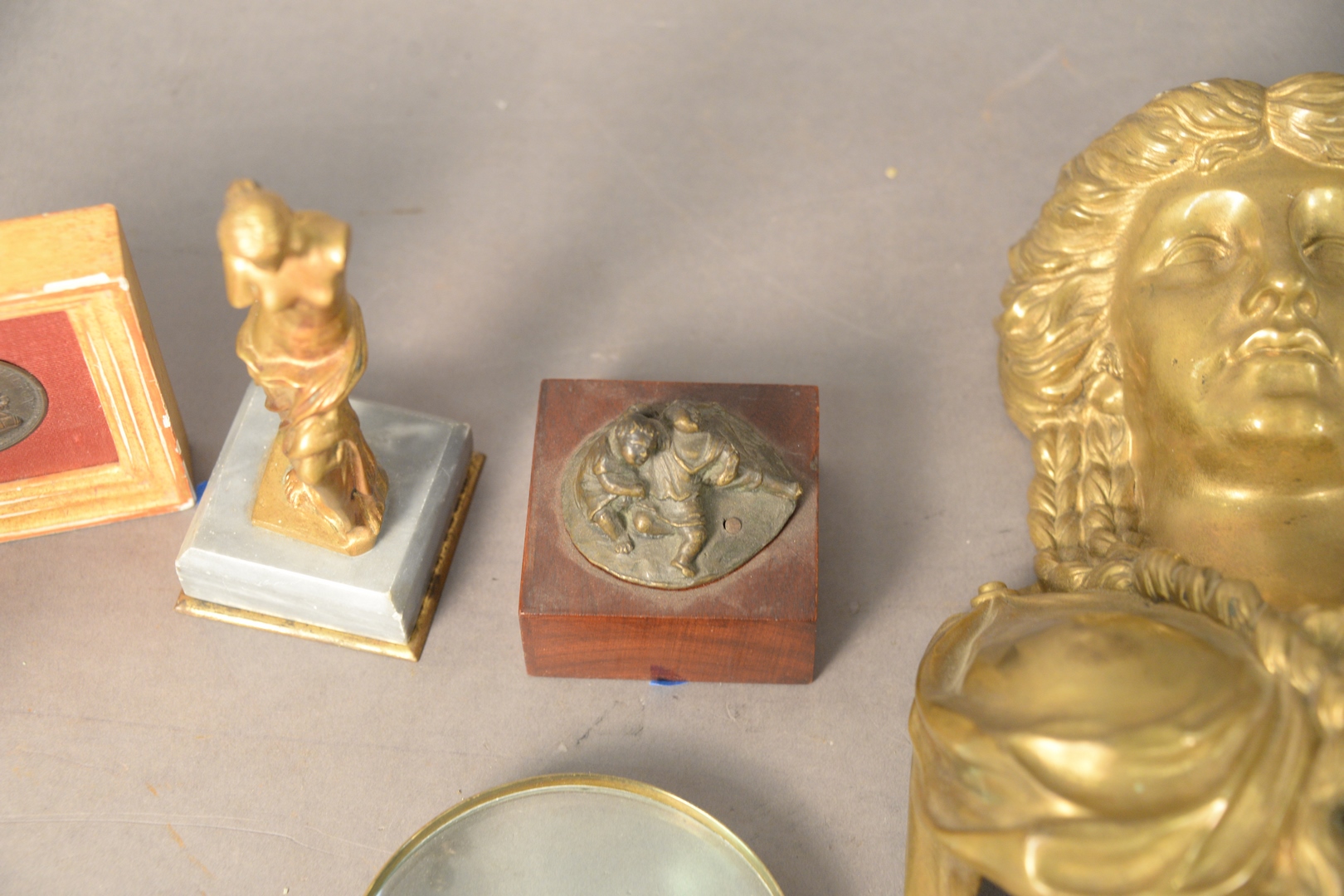 Lot 719: Seven Piece Lot of Grand Tour Items, to include two busts, a brass magnifying glass, brass reproduction of the Venus de Milo, small …