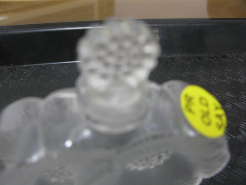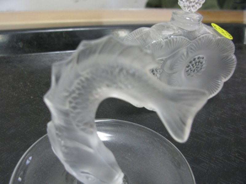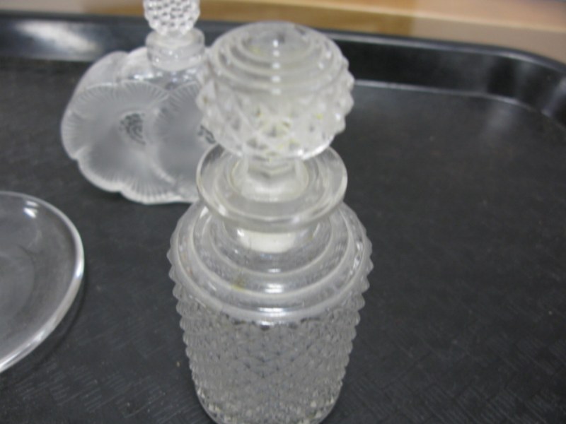 3 pc lot of Lalique perfume bottle, Lalique ring tray and Baccarat bottle with stopper