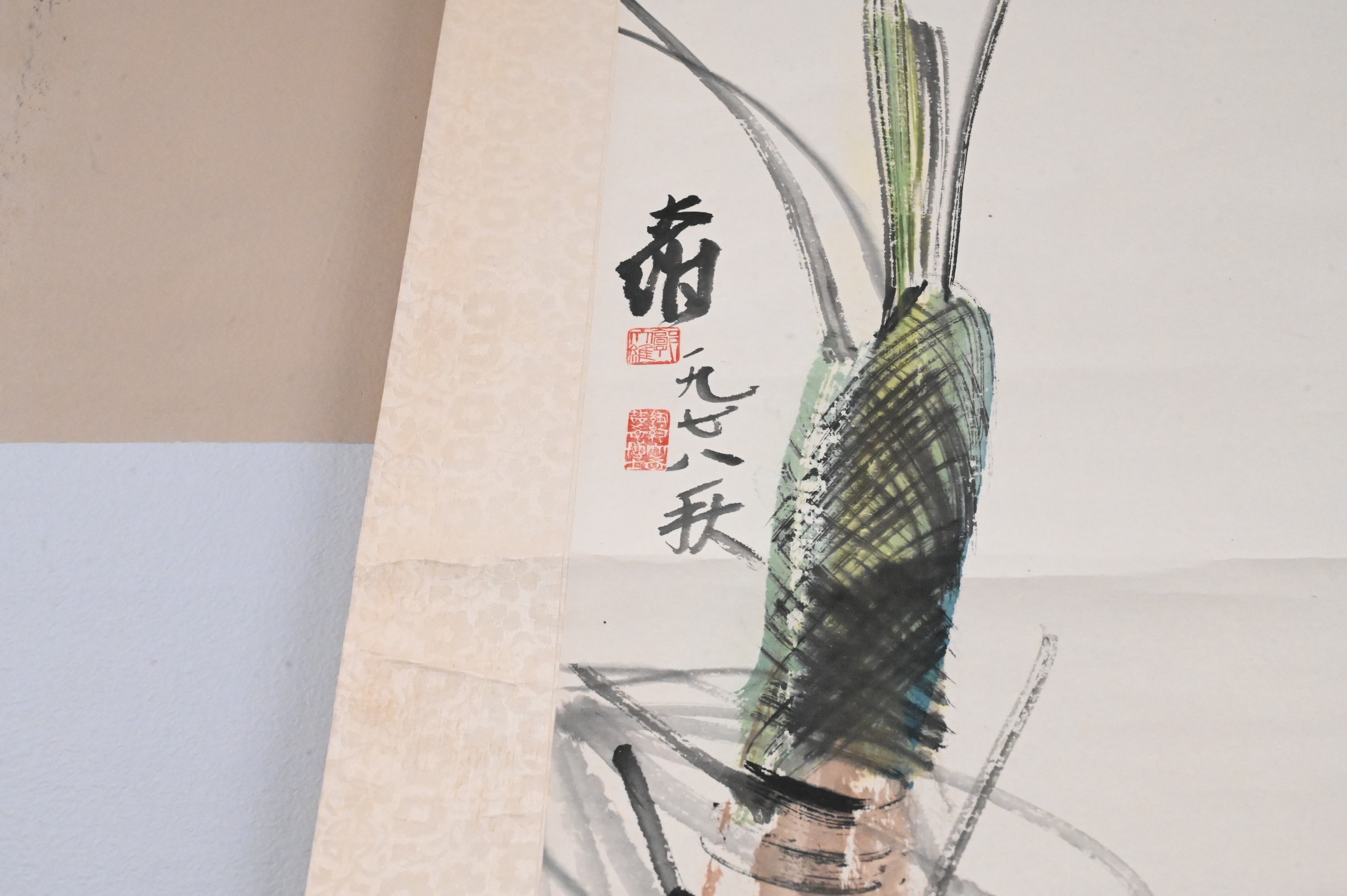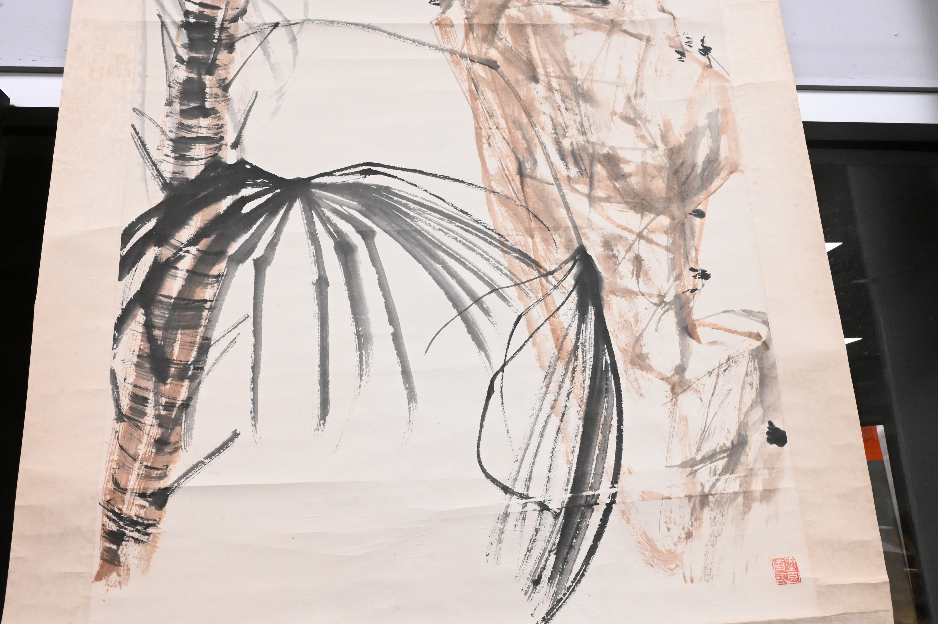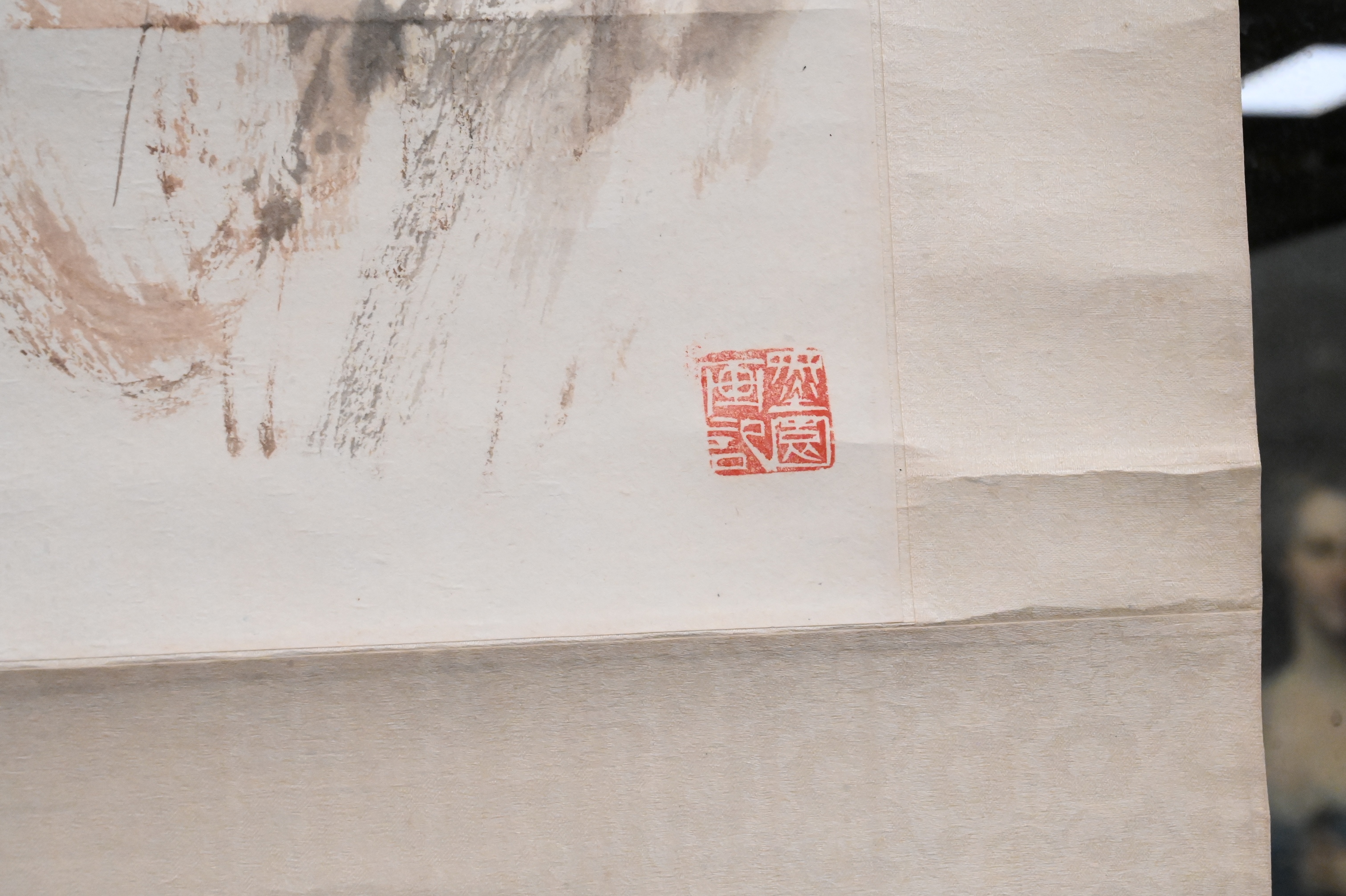 Lot 72: Chinese Ink and Color Scroll Painting of a Cat