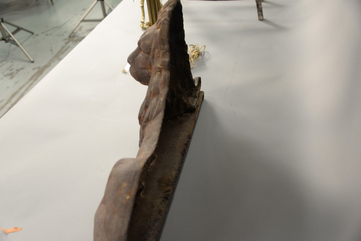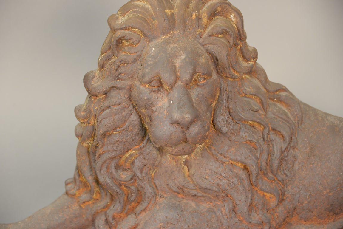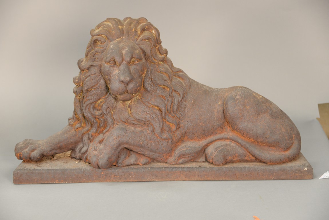 Large iron lion on rectangular base, 19th century. ht. 14 in. lg. 29 in.