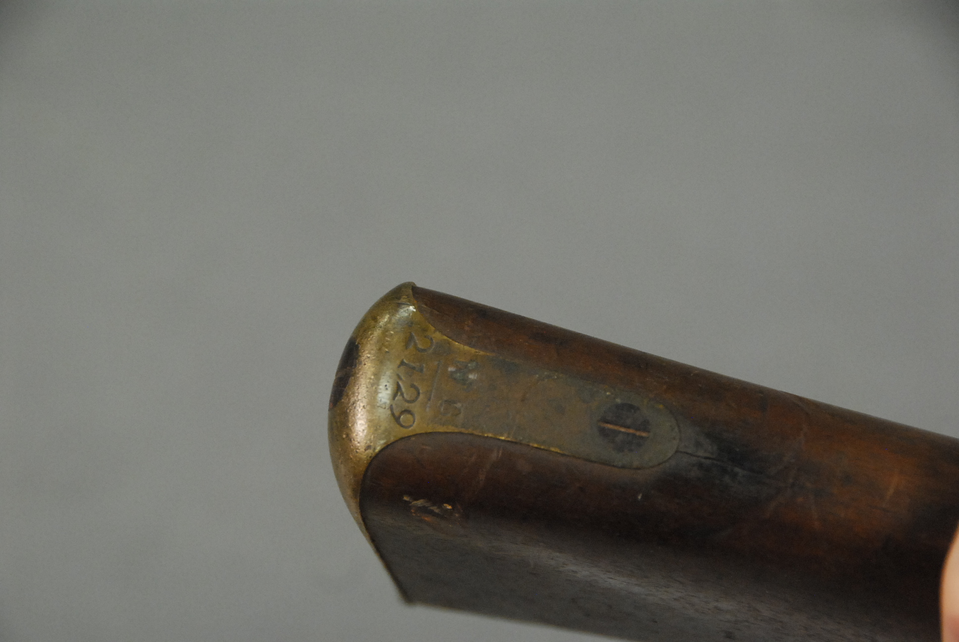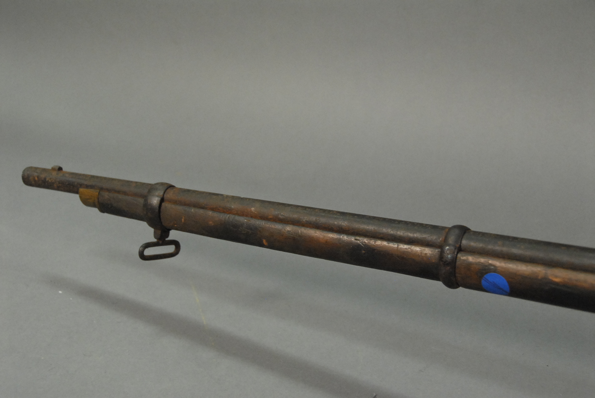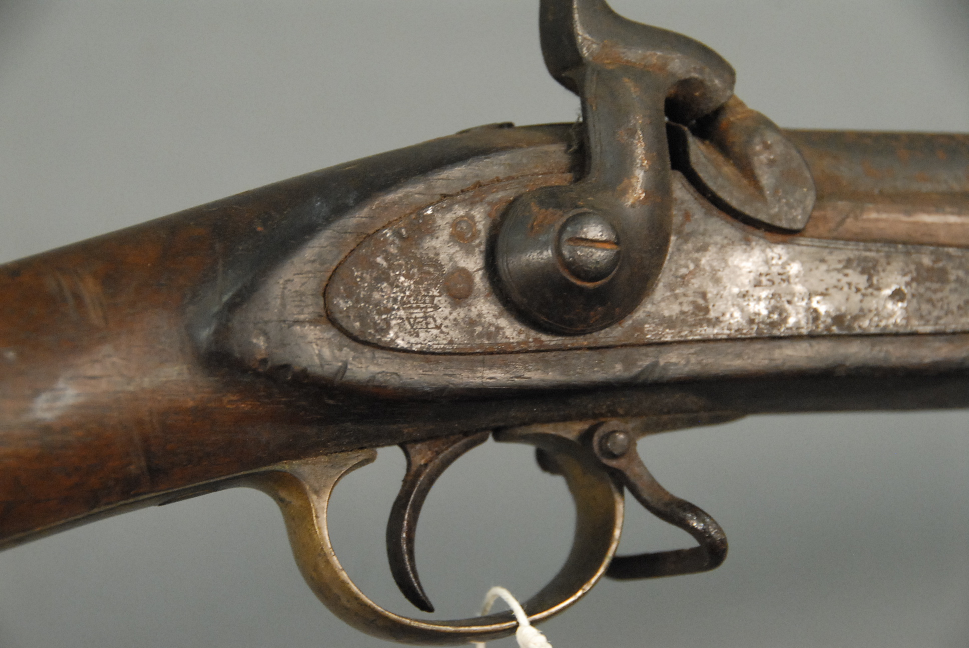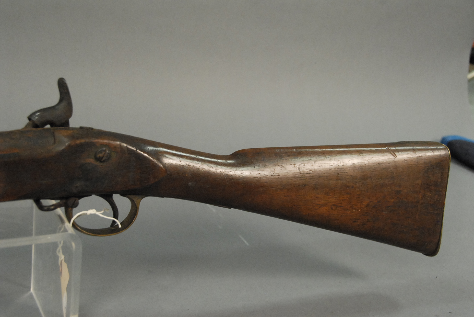 Lot 72: Military percussion rifle marked 1850 and with crown mark, rack #2129 on butt, barrel lg. 39.