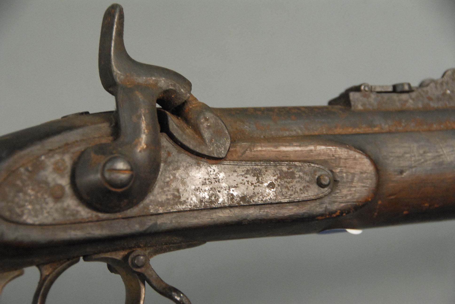 Military percussion rifle marked 1850 and with crown mark, rack #2129 on butt, barrel lg. 39.