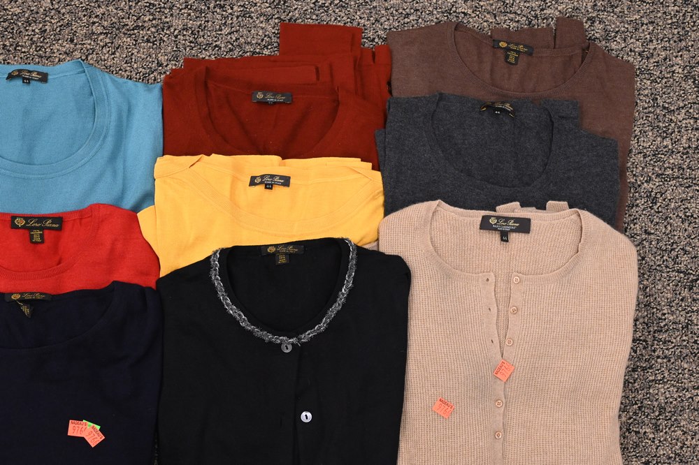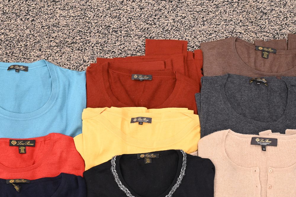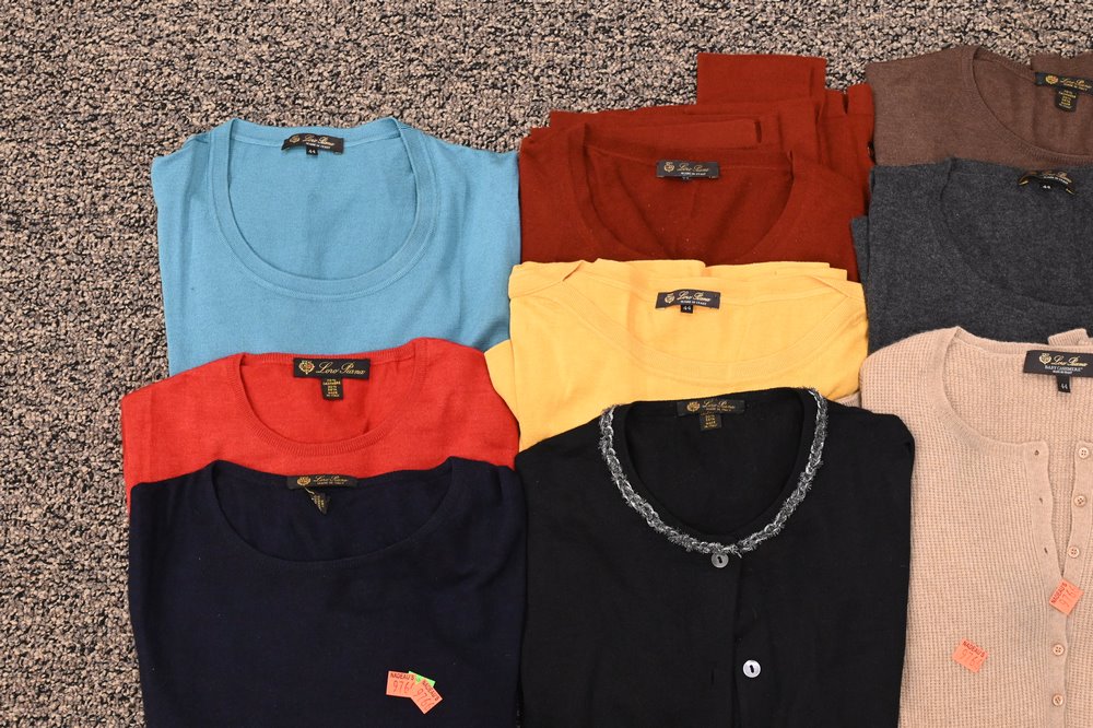 Lot 72: Nine Loro Piana Sweaters, to include cashmere, cashmere blends, in a variety of colors and styles, size 44, M/L, condition consisten…