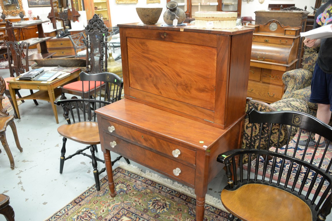 Sheraton mahogany drop front desk in two parts. ht. 52 in. wd. 34 in.