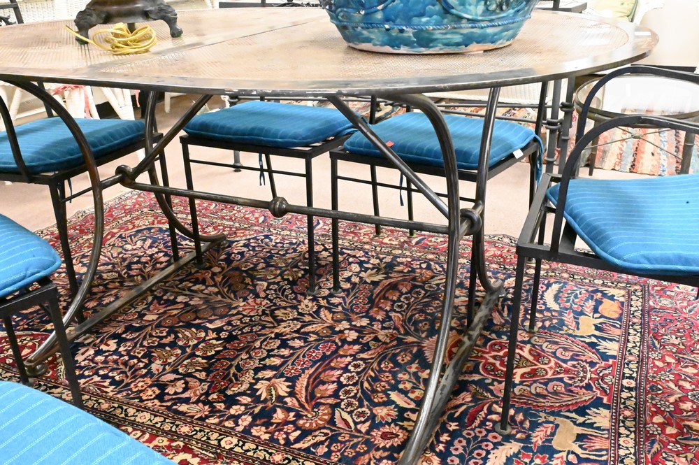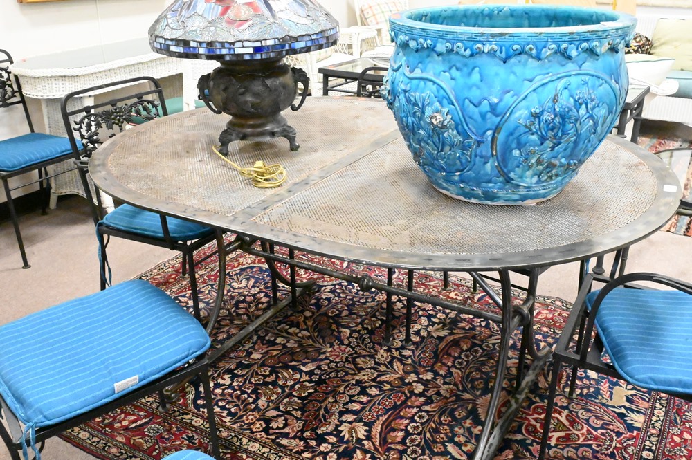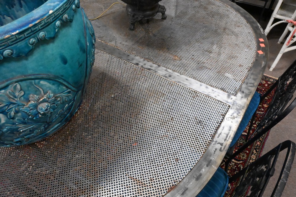 Steel Oval Outdoor Table, having perforated top, height 29 1/4 inches, top 45 1/2″ x 61″.