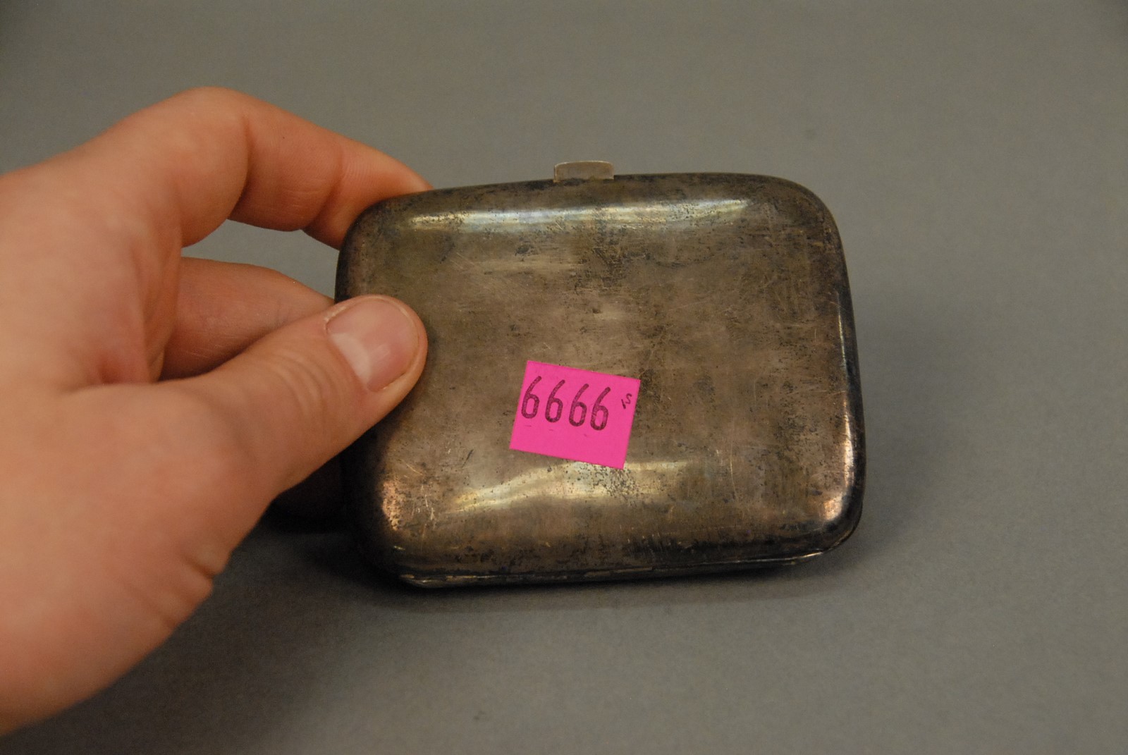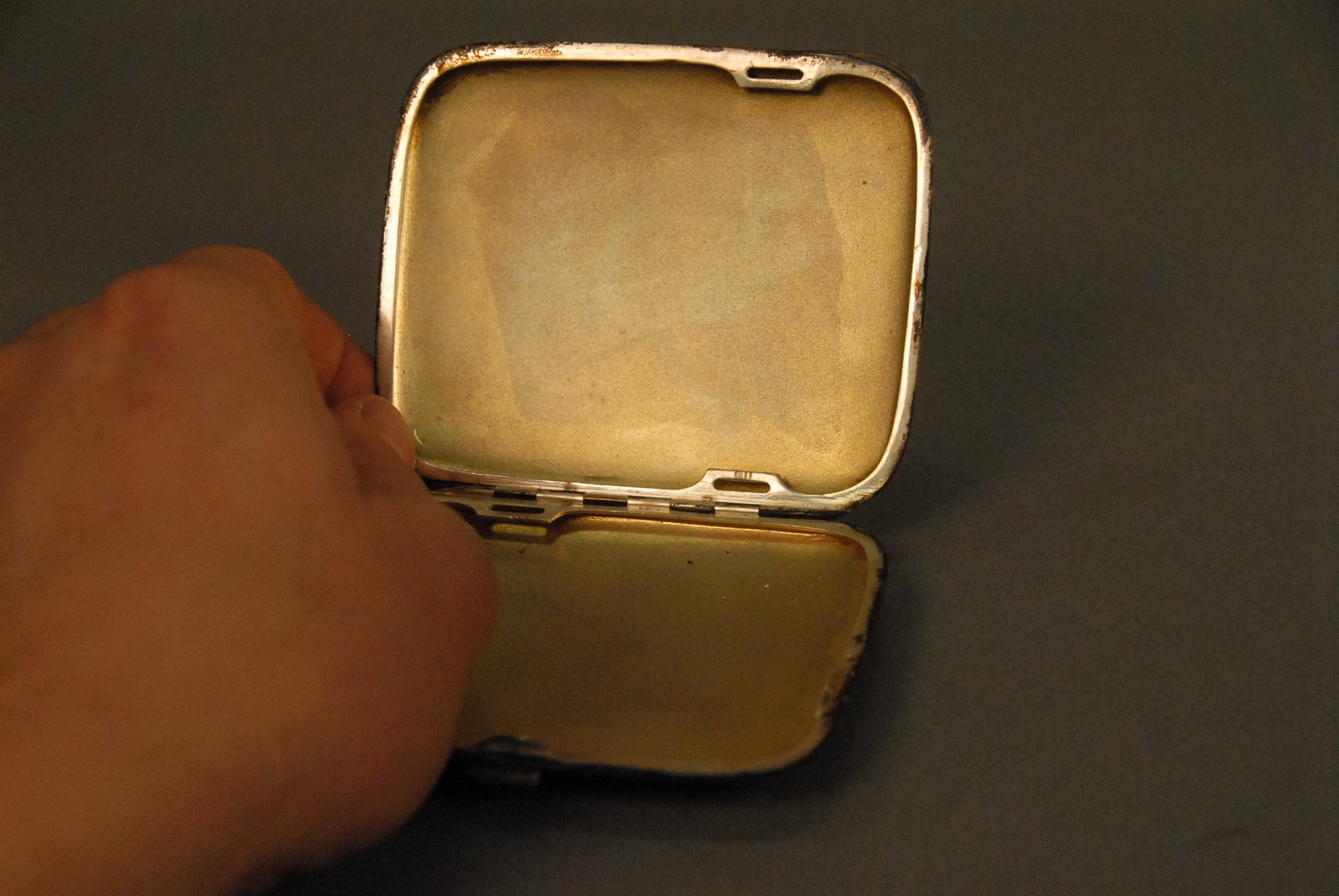 Sterling silver cigarette case cover with three enameled horses marked, .935. 4 t. oz.