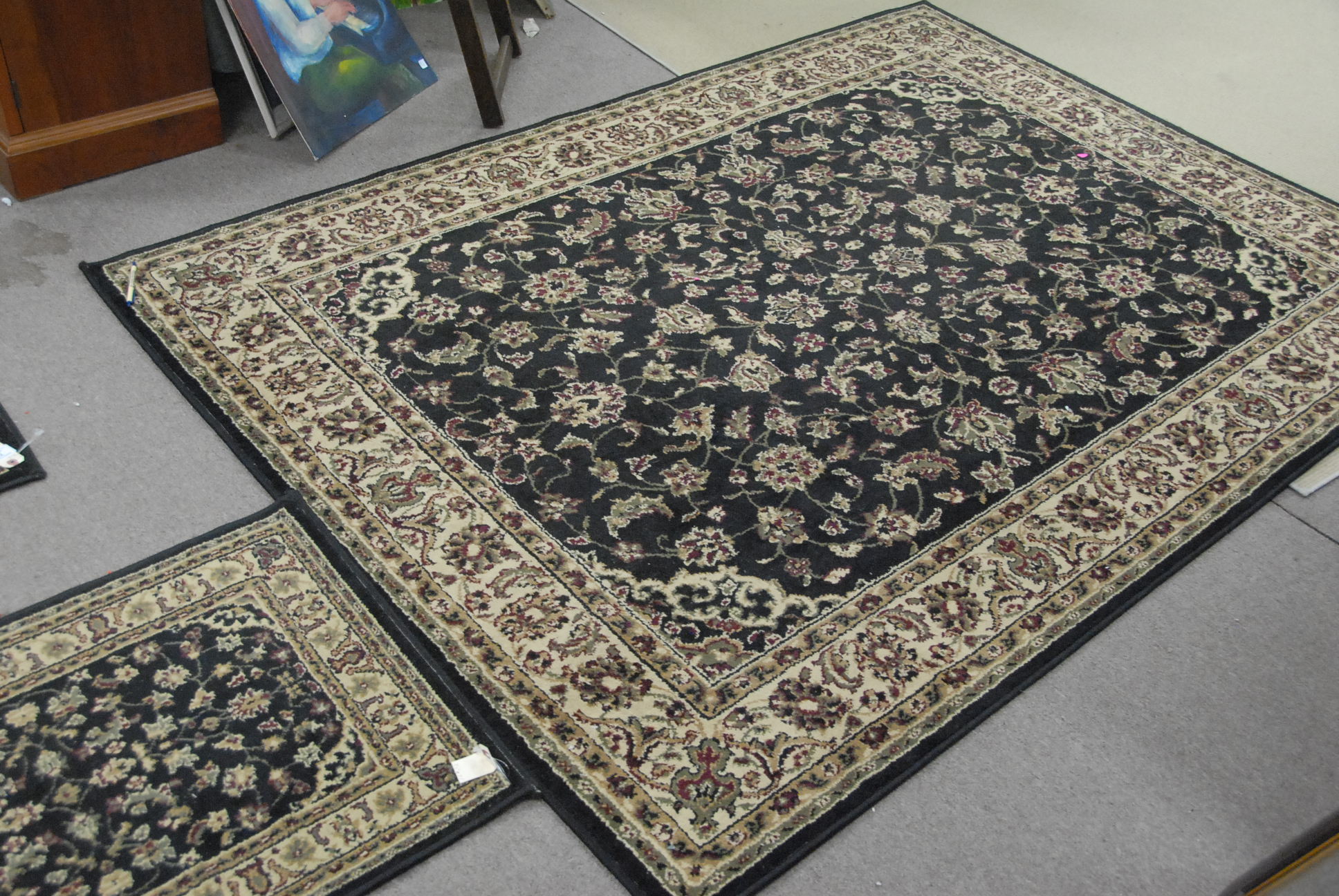Three machine made Oriental style rugs, 7’7 x 11′, 5’5 x 7’7, & runner 2’1 x 7’8.