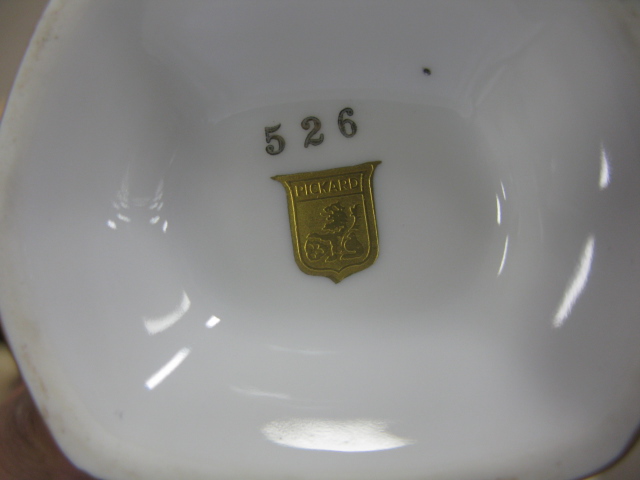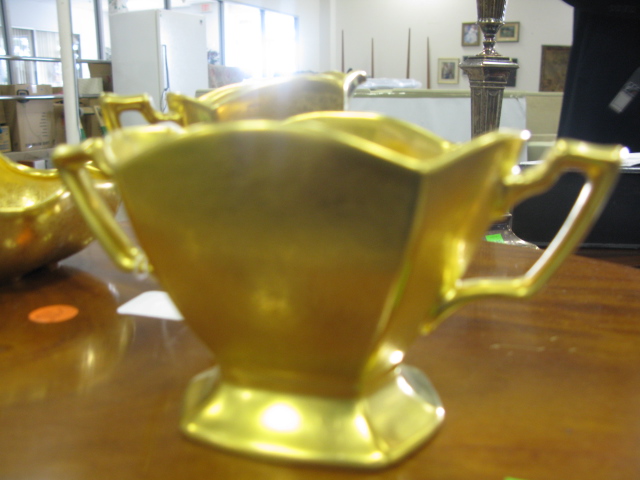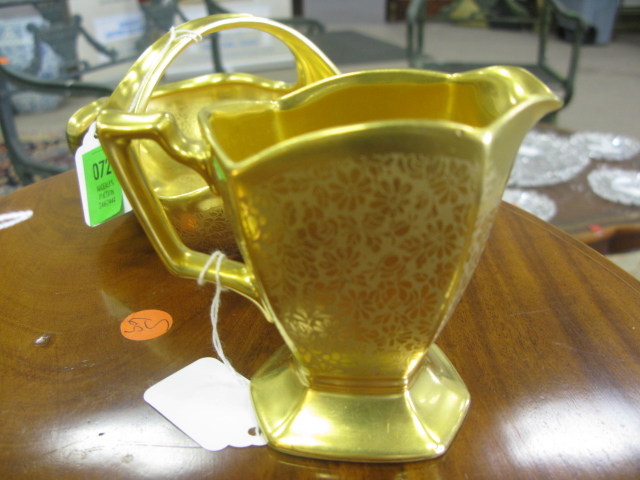 Three piece lot to include gilt decorated Piccard sugar, creamer and bowl with handle