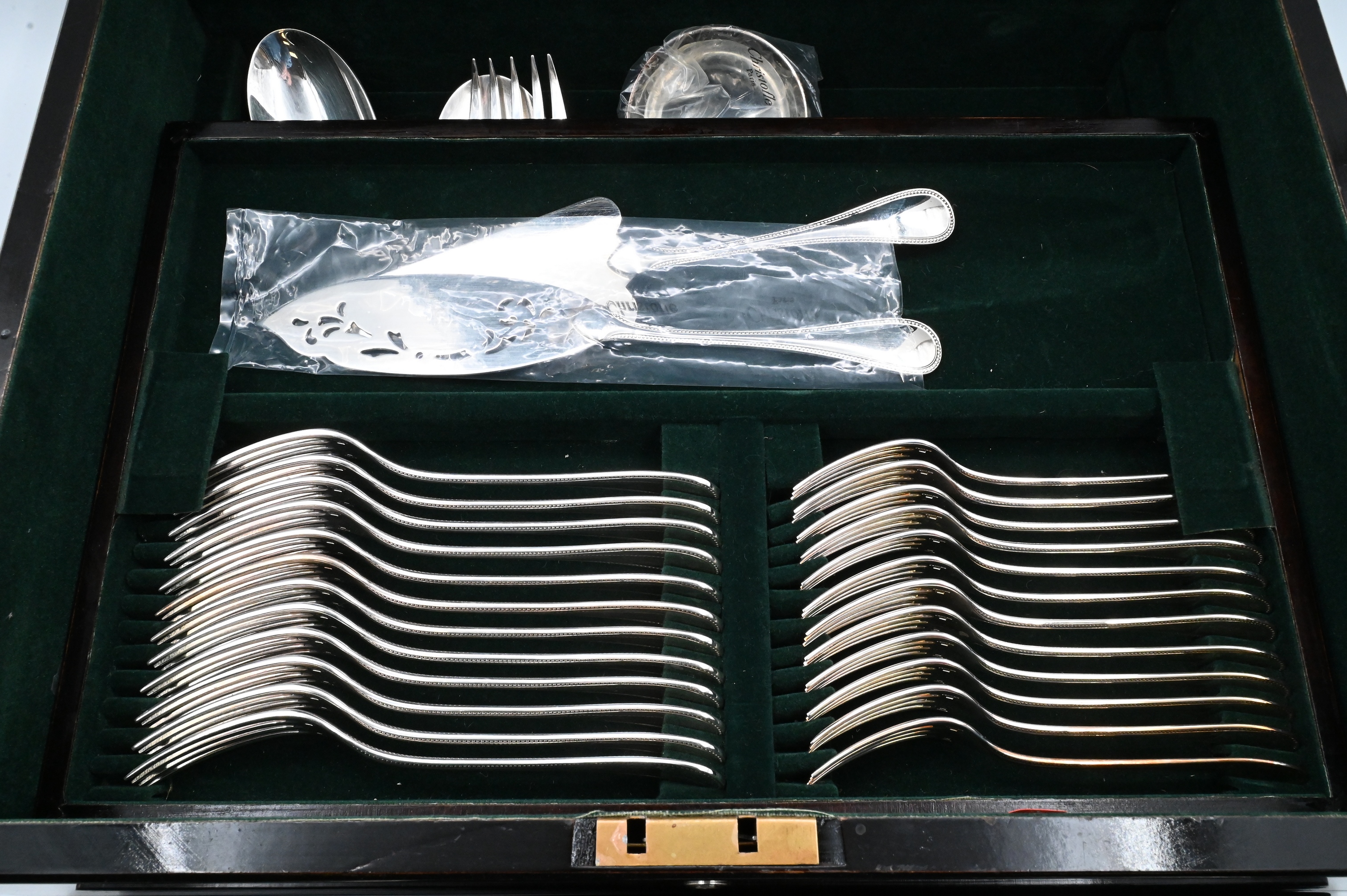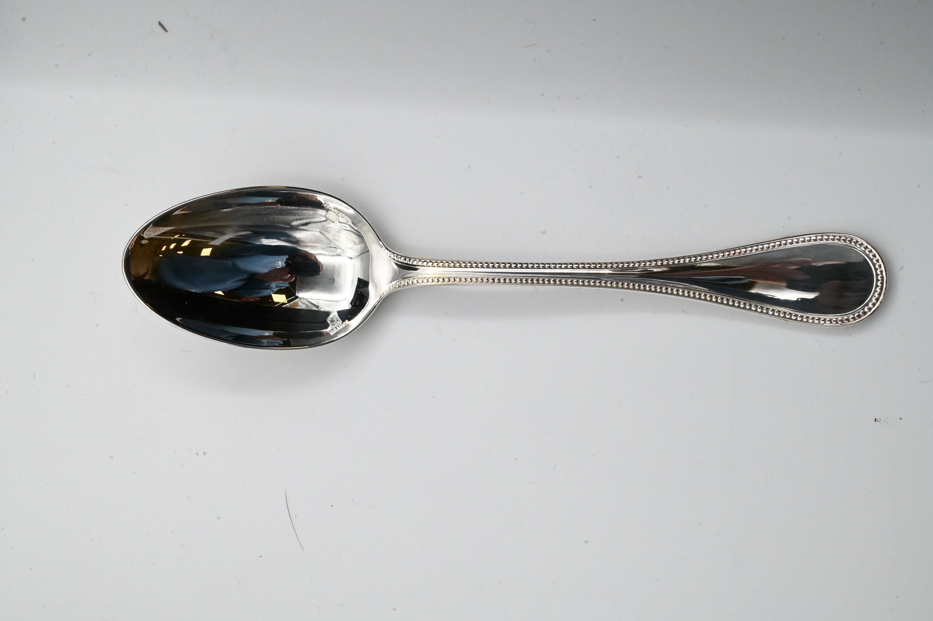 Lot 724: 130 Piece Christofle France Silver Plate Flatware Set in Perles Pattern