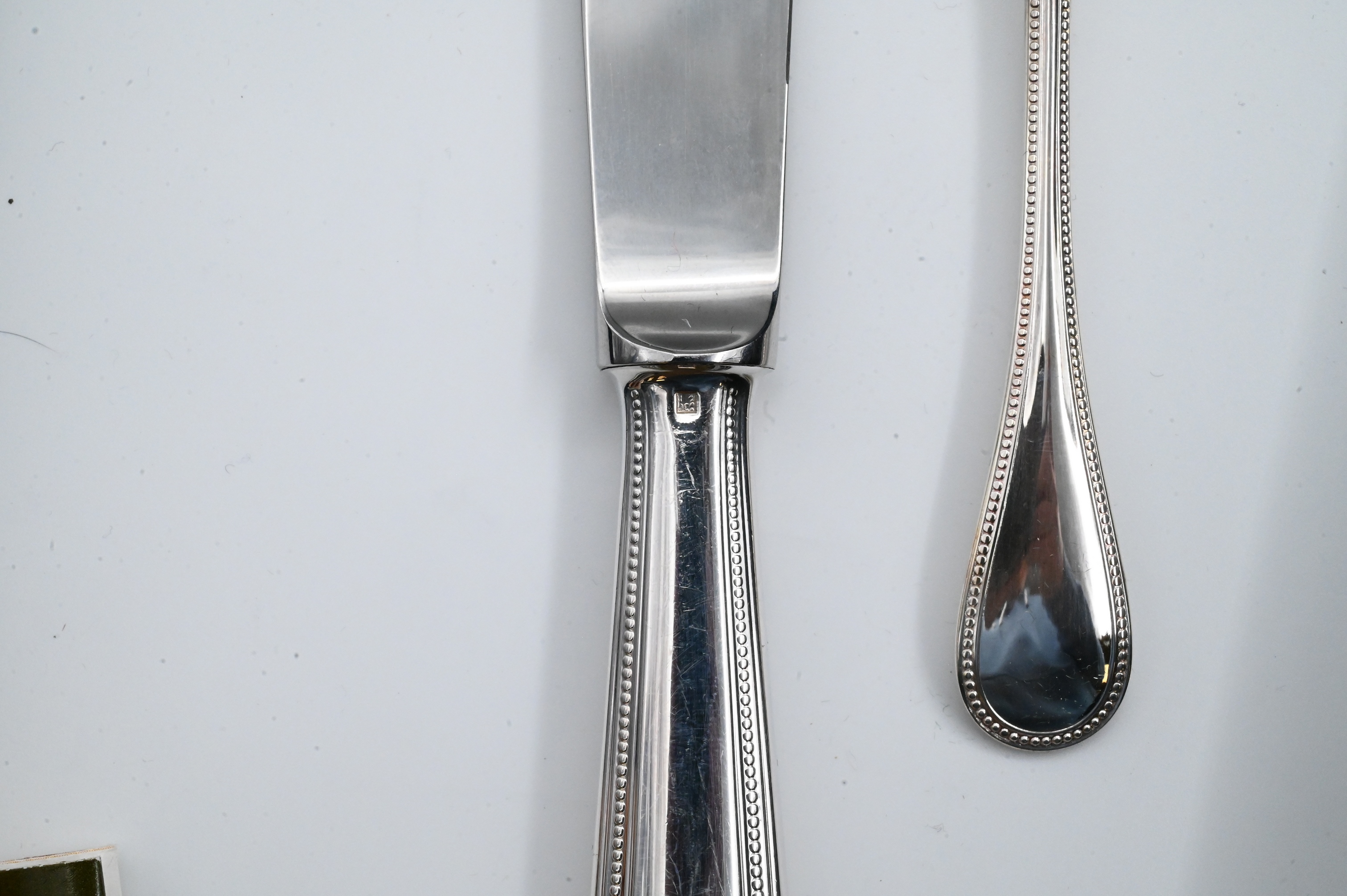 130 Piece Christofle France Silver Plate Flatware Set in Perles Pattern