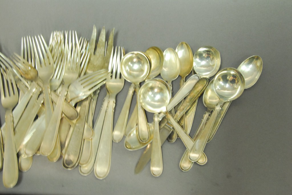 Sterling silver flatware set signed Cohr Denmark, 80 pieces total 82 t oz. plus 13 handles