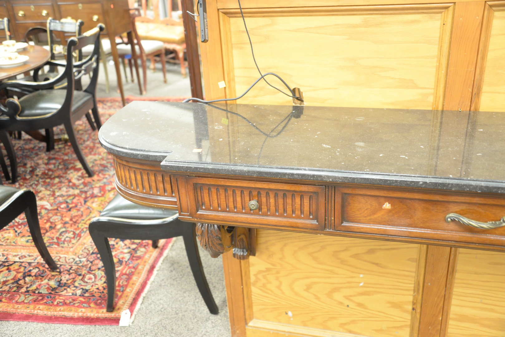 Wall Mounted Demilune Server having marble top over three drawers, height 24 inches, top 16 1/2 x 78.